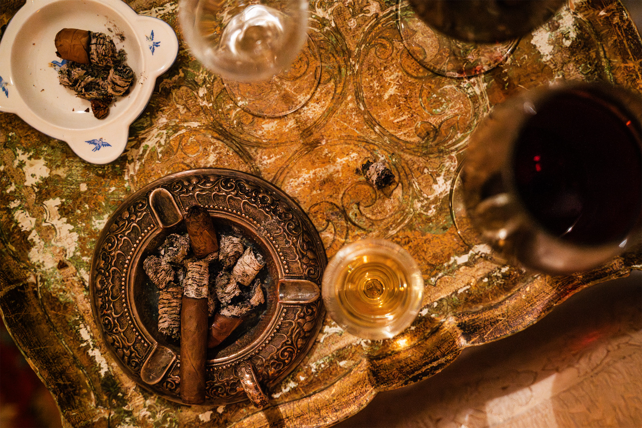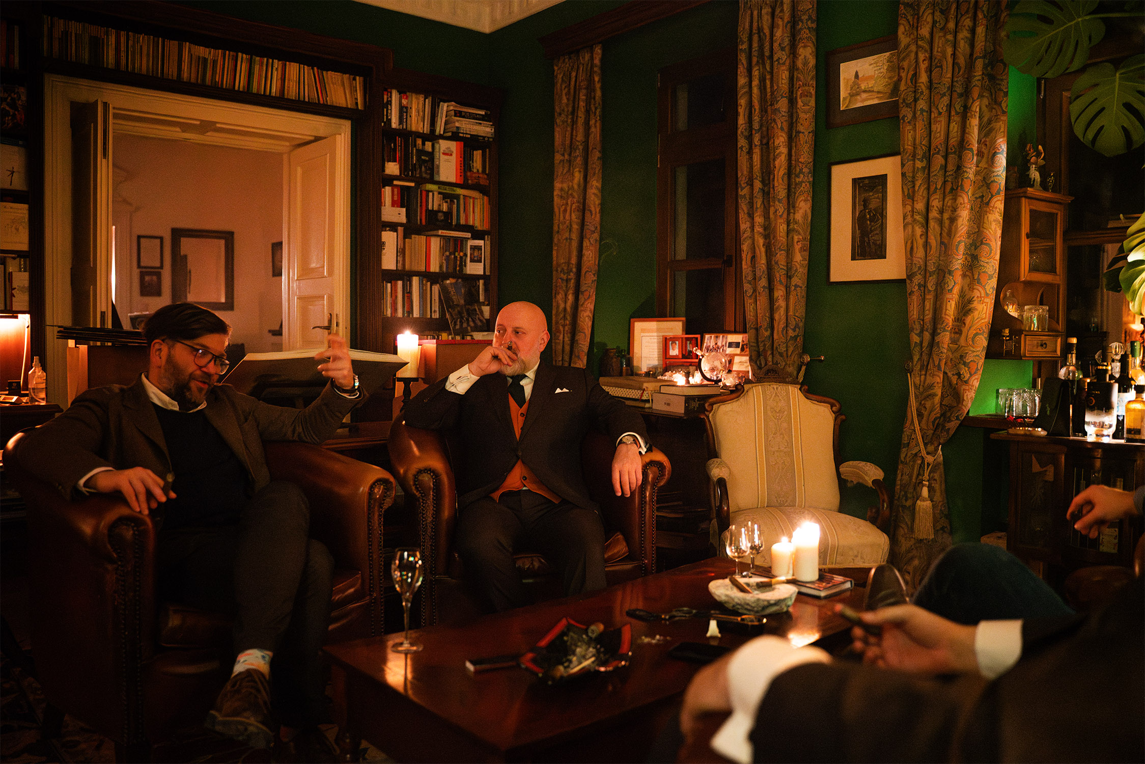 Tego wieczoru postawiliśmy na trio, które broni się samo: cygara Mererapfel Ernest Robusto, szampan Mailly Grand Cru Brut Réserve i koniak Lhéraud Vieux z selekcji M&P.
