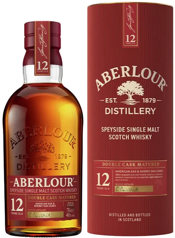 Aberlour 12YO to whisky single malt, która dzięki maturacji w dwóch rodzajach beczek, po sherry i burbonie, wyróżnia się mocnym charakterem i wyjątkowym smakiem korzenno - owocowym. Owocowe aromaty zbalansowane bogatym smakiem czekolady, zwieńczone są długo utrzymującym się i rozgrzewającym finiszem.