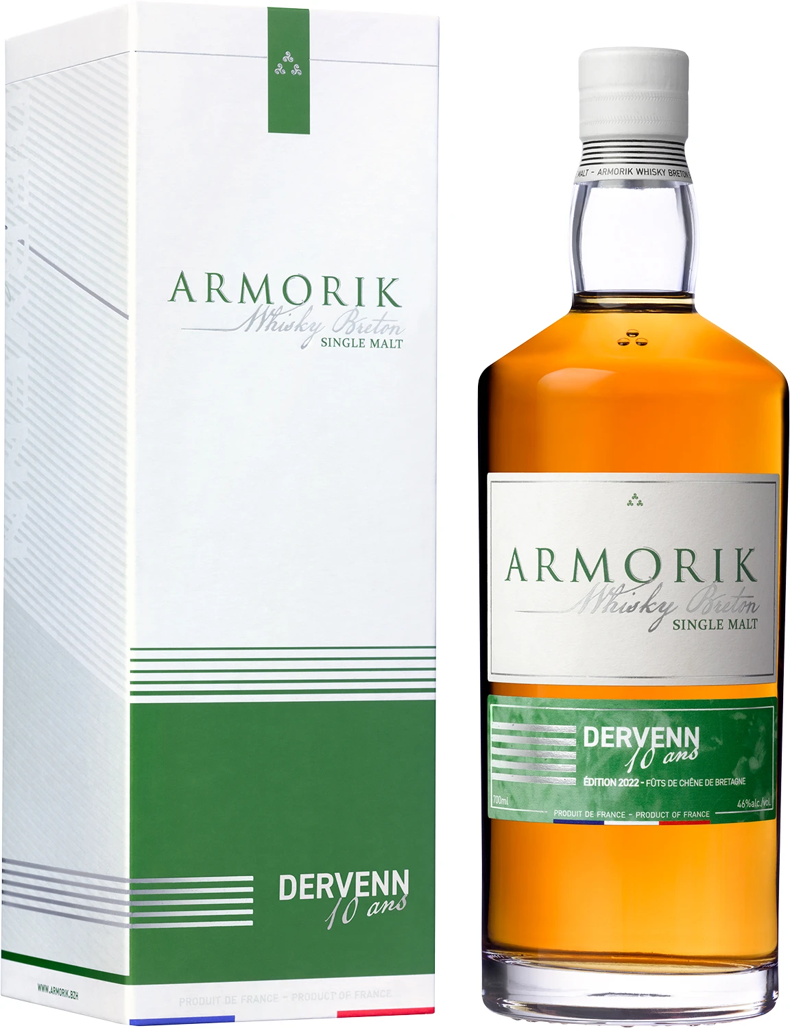 „Dervenn” w języku bretońskim oznacza dąb. Jest to limitowana edycja (2000 sztuk) 10-letniej whisky, wydanej w 2022 roku. Destylarnia od ponad 20 lat współpracuje z Jean-Baptiste Le Floch, ostatnim bretońskim bednarzem, wspólnie wprowadzając innowacje. Dervenn jest kwintesencję terroir Bretanii, gdyż dąb do produkcji beczek, pozyskiwany jest również lokalnych lasów. Dzięki starzeniu tylko w tych beczkach, whisky rozwija subtelne korzenne i drzewne aromaty. W barwie jest miedziana. Aromat intensywny i złożony, kojarzący się z dojrzałymi owocami, marakują, ciastem miodowym w towarzystwie cynamonu, karmelizowanym cukrem i z nutami skóry. Bogactwo nosa znajduje swój wyraz w ustach. Znajdujemy miodową słodycz, która ewoluuje w lukrecję i figi. W finiszu owocowy charakter Armorika łączy się z pikantnym i dymnym akcentem.