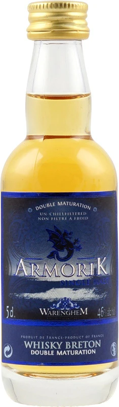 Armorik Double Maturation to symbol destylarni łączący wysoką jakość i know-how. Dzięki współpracy z miejscowym bednarzem gorzelnia używa wyjątkowych beczek wyprodukowanych z bretońskiego dębu. To właśnie w nich, whisky spędza pierwsze lata dojrzewania, zanim zostanie przelana do beczek po sherry Oloroso. Do stworzenia tej wyjątkowej whisky single malt użyto lokalnego jęczmienia pochodzącego z upraw ekologicznych. Piękny bursztynowy kolor. W zapachu przyjemna równowaga pomiędzy owocowymi nutami śliwki mirabelki i cytrusów a pikantną karmelowo-waniliową stroną. W smaku jest bogate i finezyjne. Złożoność produktu ujawnia się zarówno nutami dojrzałych owoców, słodyczy miodu i jęczmienia, jak i rozwijającymi się nutami drzewnymi. Finisz jest intrygujący i długi. Łączy w sobie nuty przypraw, herbatników miodowych z przyjemnymi nutami morskimi.