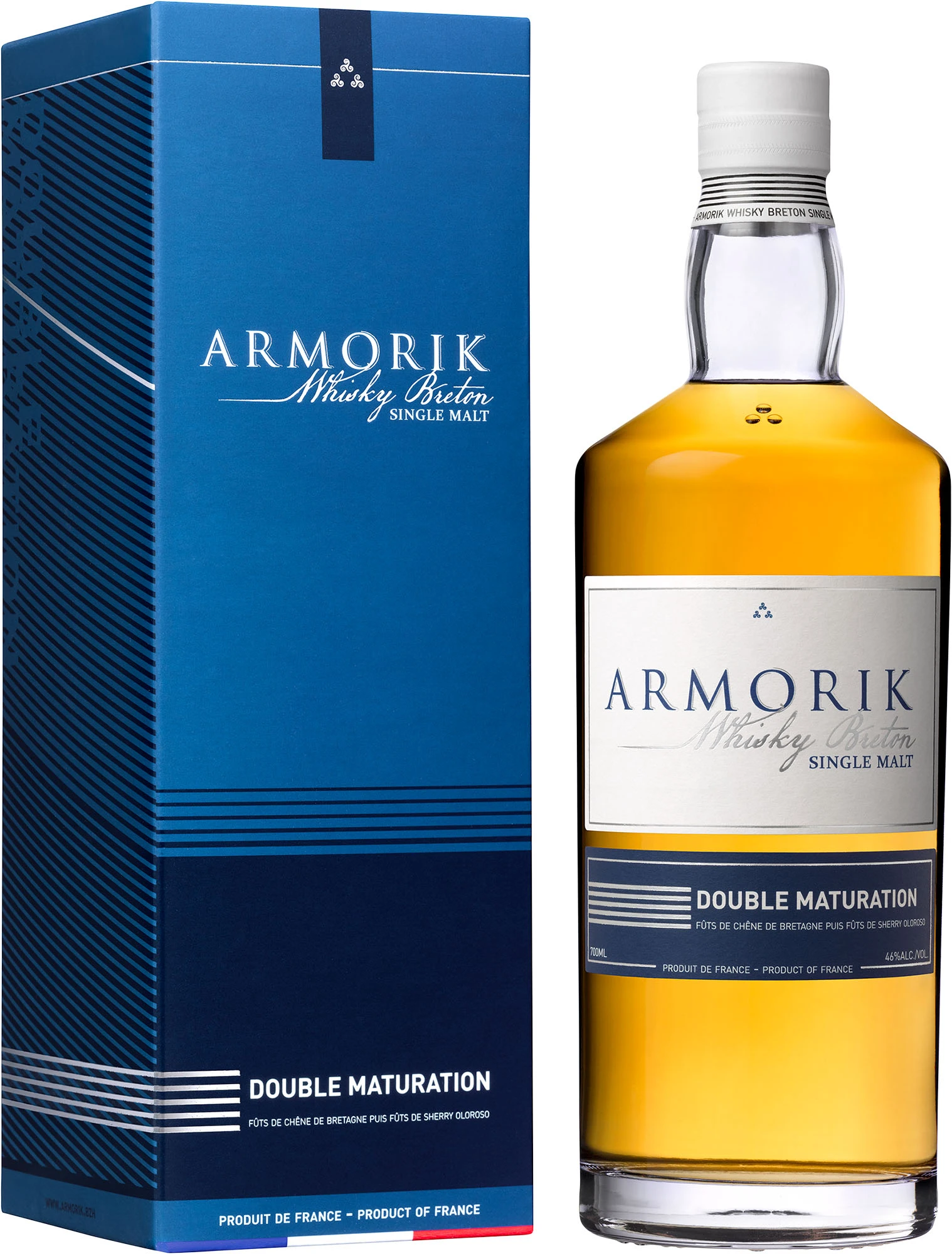 Armorik Double Maturation to symbol destylarni łączący wysoką jakość i know-how. Dzięki współpracy z miejscowym bednarzem gorzelnia używa wyjątkowych beczek wyprodukowanych z bretońskiego dębu. To właśnie w nich, whisky spędza pierwsze lata dojrzewania, zanim zostanie przelana do beczek po sherry Oloroso. Do stworzenia tej wyjątkowej whisky single malt użyto lokalnego jęczmienia pochodzącego z upraw ekologicznych. Piękny bursztynowy kolor. W zapachu przyjemna równowaga pomiędzy owocowymi nutami śliwki mirabelki i cytrusów a pikantną karmelowo-waniliową stroną. W smaku jest bogata i finezyjna. Złożoność produktu ujawnia się zarówno nutami dojrzałych owoców, słodyczy miodu i jęczmienia, jak i rozwijającymi się nutami drzewnymi. Finisz jest intrygujący i długi. Łączy w sobie nuty przypraw, herbatników miodowych z przyjemnymi nutami morskimi.