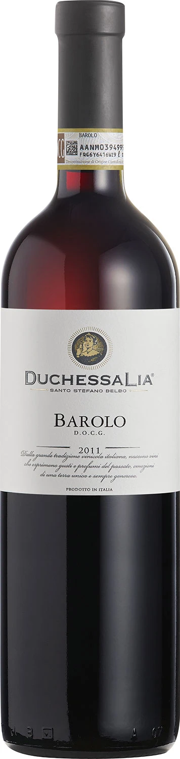 Najważniejszy i najbardziej poszukiwany typ wina z Piemontu – Barolo. Barolo Duchessa Lia jest skomponowane zgodnie z regułąmi apelacji wyłącznie z gron odmiany Nebbiolo i dojrzewało w beczkach z dębu francuskiego. Błyszcząca, czerwona barwa z niemal granatowymi refleksami. Aromat owocowy, uzupełniony nutami przypraw i skóry. W smaku bardzo eleganckie, pełne, z wyraźnie zaznaczoną, krągłą taniną. Idealne do dziczyzny, jagnięciny i wołowiny.