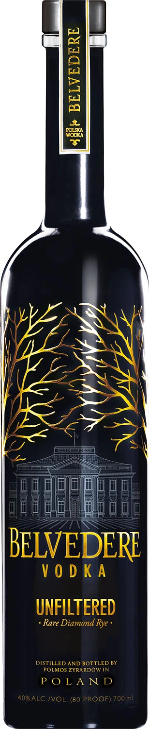 Sekretem wódki Unfiltered jest żyto odmiany Diamentowe Dańkowskie, uprawiane wyłącznie w wybranych regionach Mazowsza. Jakość żyta powoduje, iż podczas produkcji omijany jest proces filtracji, co gwarantuje wydobycie unikatowego i niezwykle złożonego smaku. Belvedere Unfiltered to aromat pieczonego chleba połączonego z prażonymi orzechami, przełamany delikatnie słonym karmelem i ostrością białego pieprzu, to pełna harmonia smaku słonego i słodkiego. Ta aksamitna wódka o intensywnym charakterze idealnie smakuje podana na kostkach lodu, doskonale również komponuje się z sokiem jabłkowym lub gruszkowym.