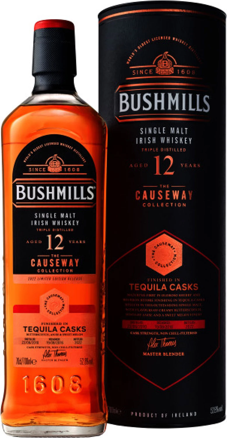 Bushmills to najstarsza licencjonowana destylarnia whiskey na świecie. Bushmills Tequila Cask Causeway Colletion to limitowana wersja tylko na rynek w Polsce. Powstaje w procesie podwójnego filtrowania, Pierwsze 6 lat leżakuje w beczkach po Burbonie i sherry kolejne 6 lat w beczkach po tequili od producenta Jose Cuervo. Zabutelkowana w 2022r bez filtracji na zimno i w mocy beczki 52,8%. W smaku delikatna i świeża, czuć aromat anyżu, wanilii, jabłek, miodu i dębu. W smaku kremowe ciasteczka, korzenną wanilię przechodzące w nutę czarnej oliwki, anyżu i prażonego dębu.