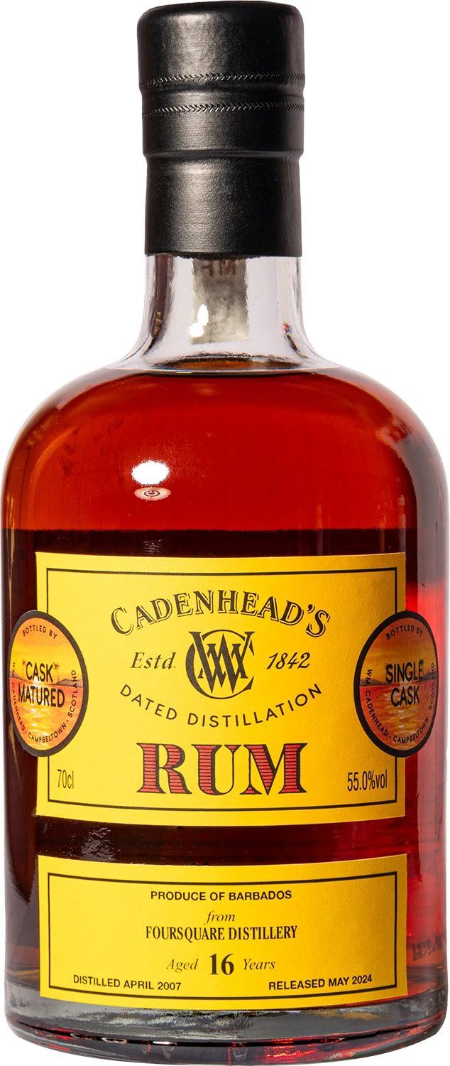 Znakomity, esencjonalny i złożony rum wydestylowany w kwietniu 2007 roku w działającej na Barbadosie destylarni Foursquare i zabutelkowanyw maju 2024 z mocą 55% przez najstarszego szkockiego bottlera firmę Cadenhead's. Profil bardzo złożony, słodko-owocowy znakomicie uzupełniony pikantnymi nutami przypraw.