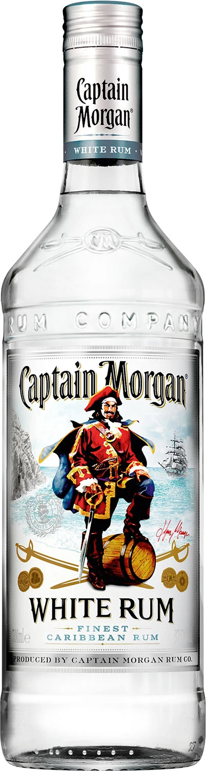 Captain Morgan to najbardziej typowy dla Karaibów rum z Jamajki, wywodzący swoją historię od znakomitego żeglarza, kapitana Henry Morgana - korsarza, pirata, wreszcie gubernatora Jamajki. Marka Captain Morgan jest najchętniej wybieraną marką złotych i ciemnych rumów w Polsce. Prawie zawsze nagradzana na wszystkich festiwalach i konkursach alkoholowych. Logo „Cpt’Morgan” to jeden z najbardziej znanych symboli świata. Captain Morgan White to rum typu białego, a zatem mniej głęboki, wyróżniający się lżejszym bukietem i smakiem. Posiada przeźroczystą barwę i aromat palonego cukru z lekko orzechową nutą. Smak rumu jest lekki, przyjemny i słodki, zakończony wytrawnym finiszem. Idealnie pasuje jako baza do lekkich, jasnych drinków (Mojito), lub schłodzony z lodem.