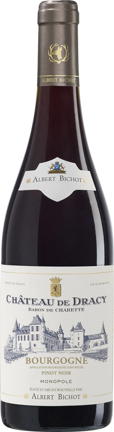 Chateau de Dracy zostało zbudowane w północnej części Burgundii w 1298 roku jako militarna siedziba ówczesnego Diuka Burgundii. Przez następne stulecia przeszło wiele przekształceń, z których główna miało miejsce w połowie XVIII wieku, kiedy to wybudowano winiarnię i piwnice do starzenia win. Tutejsze Pinot Noir ma niezwykle owocowy bukiet, z akcentami leśnej ściółki i tostowanego pieczywa. Miękkie i harmonijne, z ładnie zintegrowaną taniną. W smaku soczyście owocowe, z ciekawym finiszem i nutą lukrecji. Idealny akompaniament do grillowanych mięs, drobiu, łagodnych serów i warzyw.