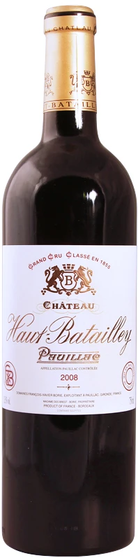 Chateau Haut-Batailley jest 5. Cru z apelacji gminnej Pauillac i od 1930 roku należy do rodziny Brest-Borie. Majątek ziemski obejmuje 40 ha, z czego 22 ha są obsadzone winoroślą. Kompozycja rocznika 2008 to Cabernet Sauvignon 66%, Merlot 32% oraz Cabernet Franc 2%. Wino dojrzewało 14-16 miesięcy we francuskich beczkach barrique, z czego aż 55% stanowią nowe beczki. Wino dla wszystkich, którzy chcą spróbować kwintesencji dojrzałego Pauillac, gdzie mamy do czynienia z dojrzałymi i jedwabistymi taninami oraz nutami trzeciorzędowymi, które rozwijają się w winie w wyniku właściwego dojrzewania.