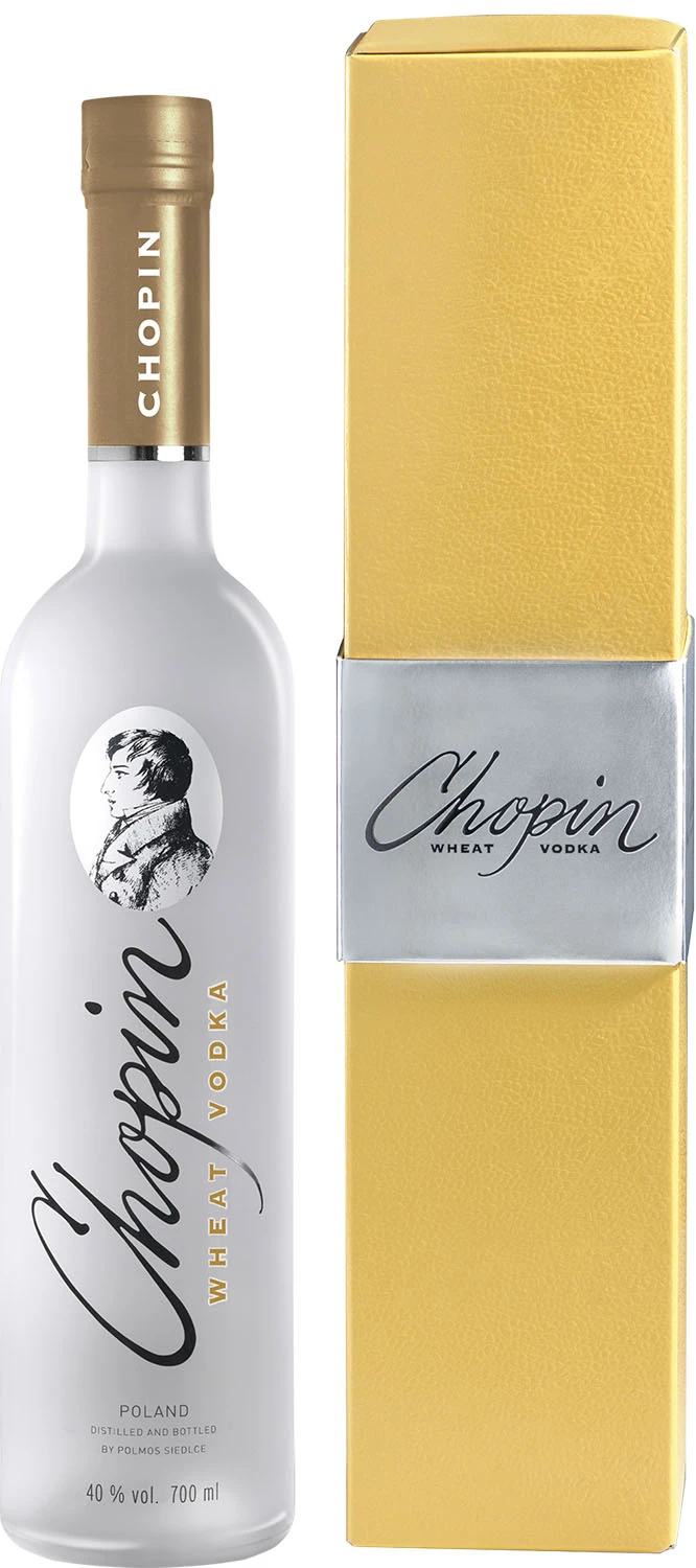 Chopin Wheat to wódka pszeniczna, wytwarzana jest według tradycyjnych receptur w 100% z polskiej pszenicy ozimej, uprawianej na żyznych glebach Podlasia. Każda butelka wódki Chopin to połączenie pszenicy, drożdży oraz wody ze studni głębinowych. Tak dobrane składniki są czterokrotnie destylowane oraz pięciokrotnie filtrowane dla uzyskania optymalnego smaku. Chopin Wheat Vodka cechuje się słodkim i delikatnym aromatem ciasta. Początkowo wyczuwalne nuty miodu zmieniają się w karmelowo-miodowy finisz.”