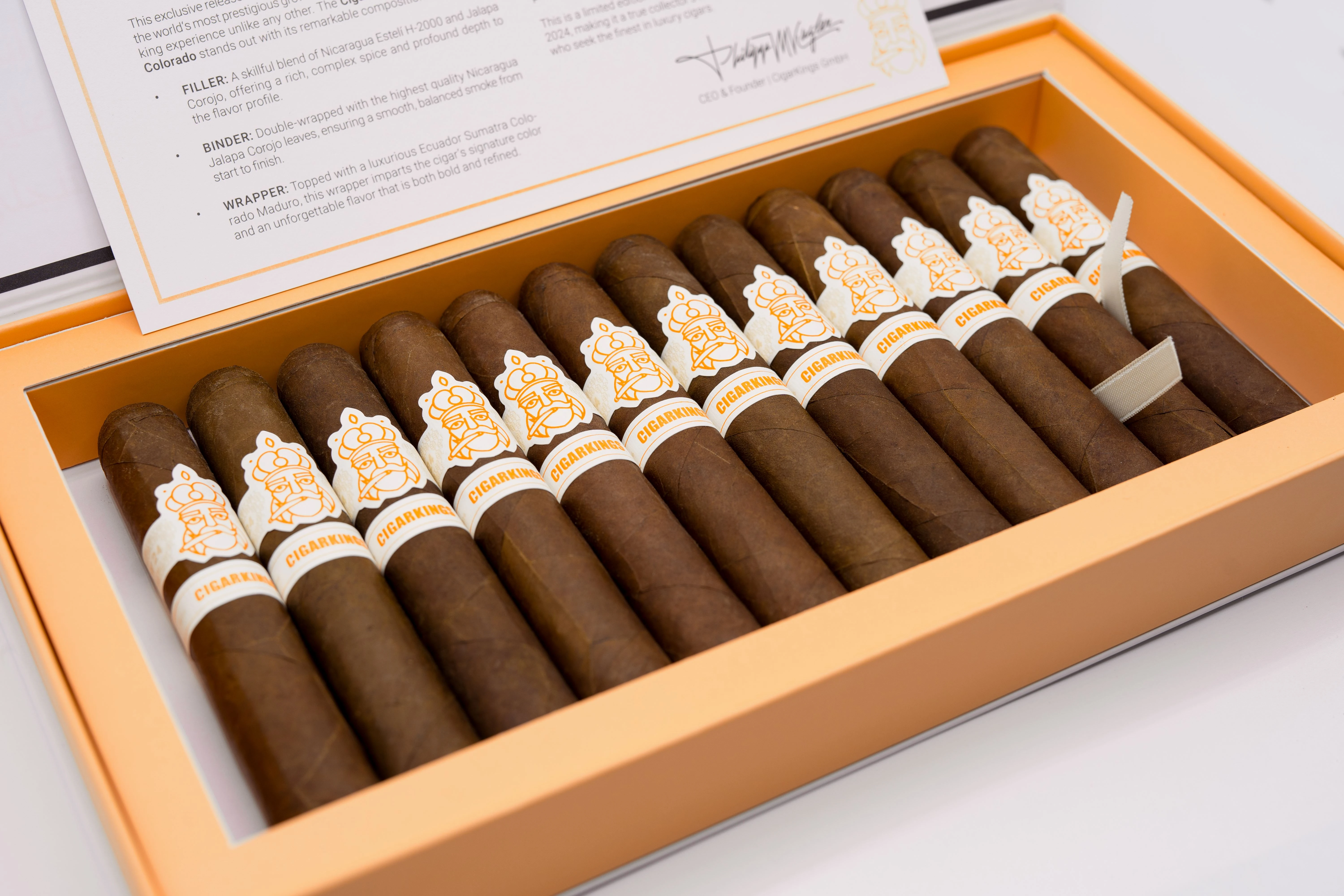Format: Robusto Inch: 5" x 52 Mm: 127 x 22 Moc: Medium Filler: Nicaragua Estelí H-2000, Jalapa Corojo Binder: Nicaragua Jalapa Corojo x 2 Wrapper: Ecuador Sumatra Colorado Maduro Opakowanie: Skrzynka Ilość sztuk w opakowaniu: 12 Podana wartość to cena za 1 sztukę cygara Premiera tej Limitowanej Edycji CigarKings COY 24 Geniales Colorado odbyła się na największych w tej części świata targach cygarowych Intertabac 2024 w Dortmundzie. CigarKings COY 24 Geniales Colorado to ekskluzywne cygaro łączy w sobie tytonie premium z najlepszych i najbardziej renomowanych regionów uprawy na świecie. CigarKings COY 24 Geniales Colorado urzeka swoim wyjątkowym składem: - Filler (wkładka): Harmonijna mieszanka Nikaragua Estelí H-2000 i Jalapa Corojo, zapewniająca cygaro ze złożoną pikantnością i głębią. - Binder (zawijacz): Podwójnie zawijany z najlepszych liści Nicaragua Jalapa Corojo, zapewniający doskonale zrównoważony rozwój dymu. - Wrapper (liść pokrywowy): Luksusowy Ecuador Sumatra Colorado Maduro, nadający cygaru charakterystyczny kolor i niepowtarzalny charakter. Dzięki rozmiarowi 5 x 52, CigarKings COY 24 Geniales Colorado zapewnia pełne doznania podczas palenia, które zachwycą zarówno miłośników, jak i koneserów. Cygara zapakowane są w eleganckie pudełko zawierające 12 doskonale zwiniętych cygar. Pewnym "smaczkiem", który docenią Aficionados w naszym kraju jest polski akcent na pudełku!