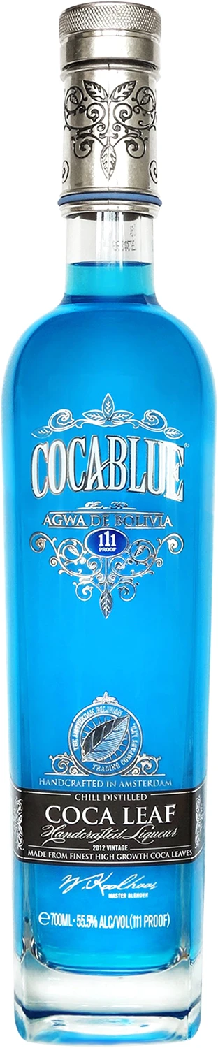 COCA BLUE - likier klasy ultra-premium z ekstraktem ze świeżo zebranych boliwijskich liści koki i zniewalającym błękitnym kolorze. Jeden z najbardziej pożądanych ekskluzywnych alkoholi na świecie produkowany w limitowanej serii. Co roku jest wprowadzany do obrotu jeden rocznik, a każda butelka jest odnotowywana, podpisywana i ma swój unikalny numer. Zawiera 69 gramów ekstraktu z najlepszych, starannie wybranych liści koki i jest 5-krotnie destylowany dla uzyskania niezwykle czystego i mocnego finiszu o zawartości 55,5% alkoholu. Niesamowity likier zamknięto w niezwykłej karafce, która podkreśla jego unikalność Ceniony za nieporównywalny smak. Oficjalny Drink Pałacu Prezydenckiego w La Paz (Boliwia). Przykuwający uwagę cudowny, błękitny kolor likieru jest inspirowany starożytnym Królewskim Błękitem Majów oraz amazońskim rzadkim gatunkiem ptaków rajskich. Walory smakowe i estetyczne tego alkoholu nie mają sobie równych. Królewski smak. Czysta, błękitna przyjemność.