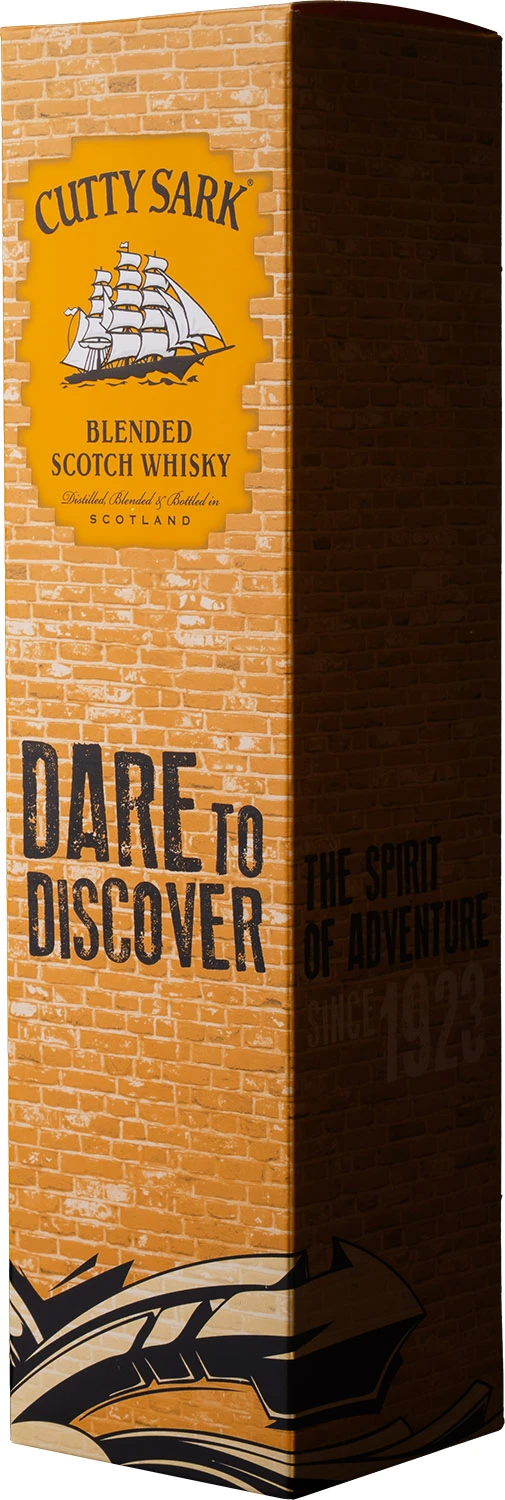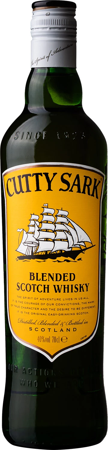 Cutty Sark to jedna z najpopularniejszych marek whisky mieszanej na świecie, która została wprowadzona na rynek w 1923 roku. Jej lekki i orzeźwiający charakter tworzy specjalna kompozycja najlepszych whisky single malt i najwyższej jakości whisky zbożowych (single grain). Podstawę blendu stanowią whisky słodowe z działającej w Speyside destylarni Glenrothes, które nadają owocowo-waniliowego charakteru. Dojrzewanie odbywa się głównie w beczkach z amerykańskiego dębu, ale wykorzystywane są też beczki pierwszego napełnienia po sherry. Cutty Sark to whisky, która ma uniwersalne zastosowanie. Można pić ją w czystej postaci, na kostkach lodu w gorący letni dzień, świetnie sprawdza się też w różnych koktajlach. Aromat jest bardzo przystępny, delikatny i kuszący, z nutami wanilii, miodu, owoców z sadu, siana i suszonych owoców. W smaku jest świeża, gładka, zrównoważona z wyraźnie wyczuwalną słodką, kremową wanilią, maślano-zbożowymi ciasteczkami, nutami dębu i miodu. Nazwa whisky pochodzi od najszybszego na świecie klipera herbacianego. Żaglowiec Cutty Sark zbudowano w 1869 roku w Szkocji i służył do transportu herbaty z Chin. Był uznawany za najładniejszy i najszybszy w ówczesnych czasach kliper.