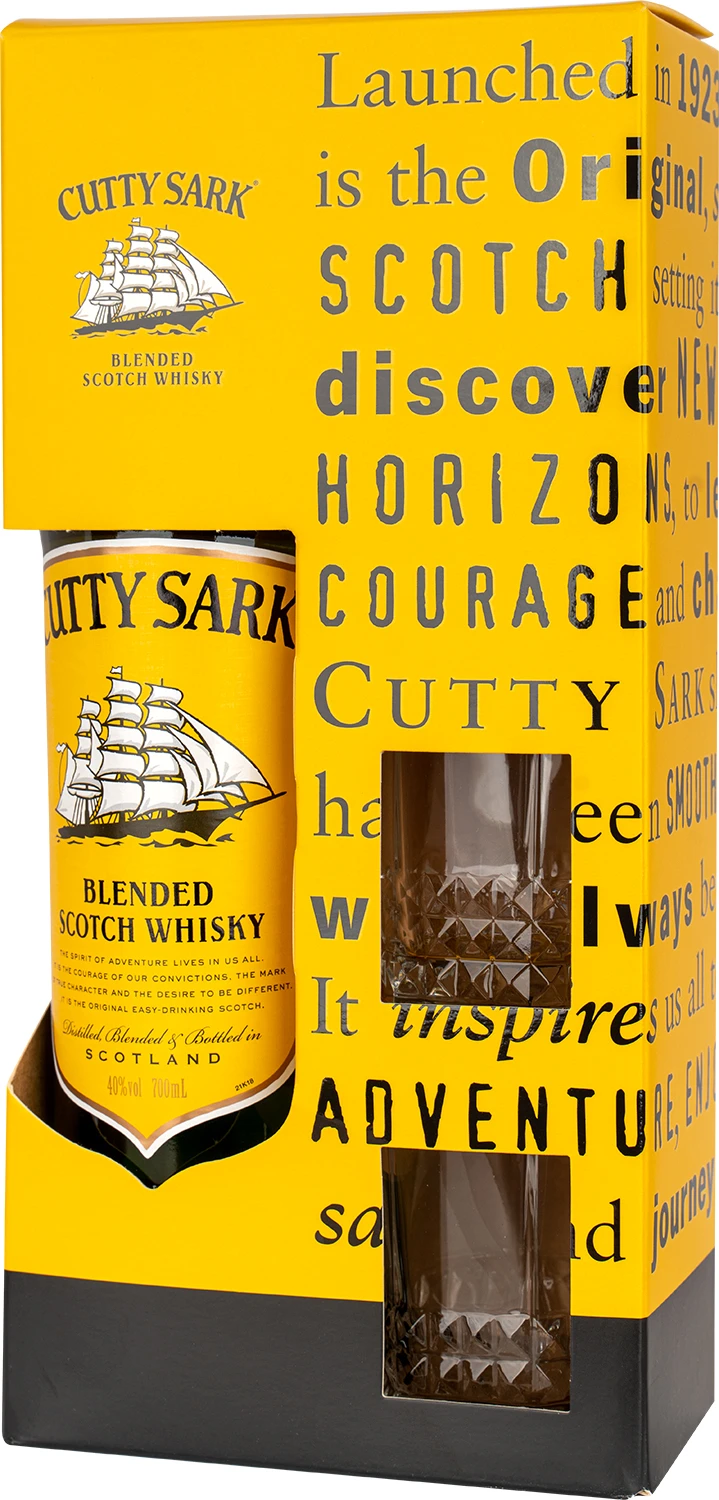 Cutty Sark to jedna z najpopularniejszych marek whisky mieszanej na świecie, która została wprowadzona na rynek w 1923 roku. Jej lekki i orzeźwiający charakter tworzy specjalna kompozycja najlepszych whisky single malt i najwyższej jakości whisky zbożowych (single grain). Podstawę blendu stanowią whisky słodowe z działającej w Speyside destylarni Glenrothes, które nadają owocowo-waniliowego charakteru. Dojrzewanie odbywa się głównie w beczkach z amerykańskiego dębu, ale wykorzystywane są też beczki pierwszego napełnienia po sherry. Cutty Sark to whisky, która ma uniwersalne zastosowanie. Można pić ją w czystej postaci, na kostkach lodu w gorący letni dzień, świetnie sprawdza się też w różnych mixach i koktajlach. Aromat jest bardzo przystępny, delikatny i kuszący z nutami wanilii, miodu, owoców z sadu, siana i suszonych owoców. W smaku jest świeża, gładka, zrównoważona z wyraźnie wyczuwalną słodką, kremową wanilią, maślano-zbożowymi ciasteczkami, nutami dębu i miodu. Nazwa whisky pochodzi od najszybszego na świecie klipera herbacianego. Żaglowiec Cutty Sark zbudowano w 1869 roku w Szkocji i służył do transportu herbaty z Chin. Był uznawany za najładniejszy i najszybszy w ówczesnych czasach kliper.