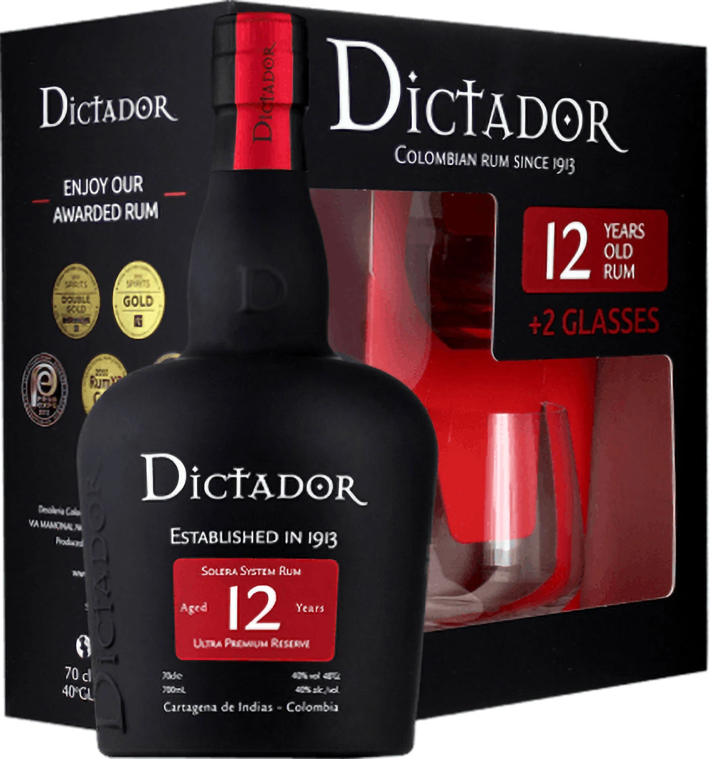 DICTADOR RUM 12'YO 40% 0,7L KARTONIK + 2 SZKLANKI