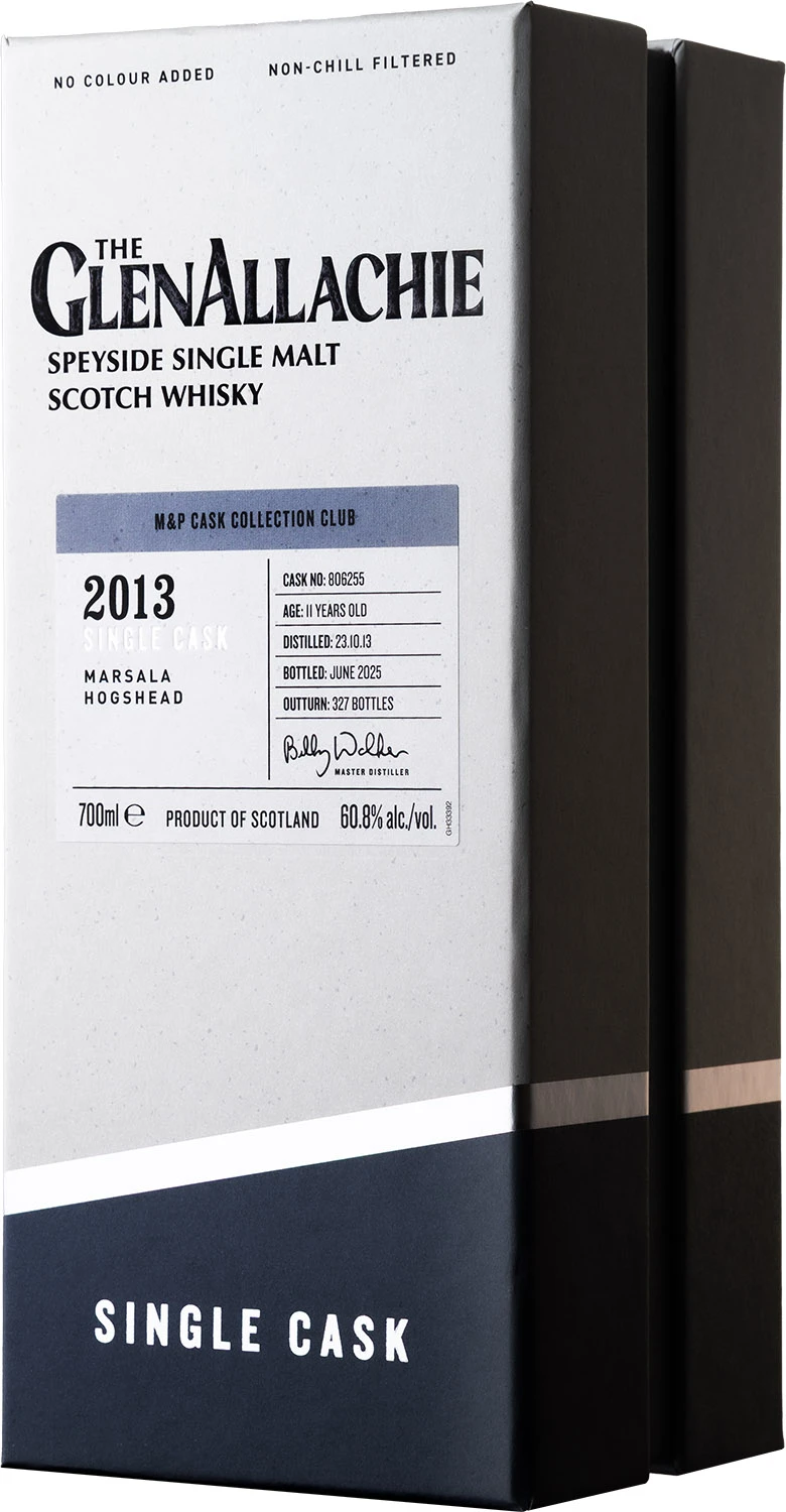 Whisky single cask zabutelkowana z beczki wybranej przez M&P w ramach serii M&P Cask Collection Club. Whisky została wydestylowana 23.10.2013 roku i zabutelkowana w czerwcu 2025 roku z beczki typu hogshead nr 806255 po winie Marsala. Whisky została zabutelkowana z mocą cask strength 60,8%, w naturalnym kolorze i bez filtracji na zimno . W zapachu odnajdziemy aromaty skórki pomarańczowej, orzechów laskowych, plastra miodu z brandy, duszonych gruszek, masła z cynamonem i czerwonych owoców jagodowych. W smaku wiśnie, kawa, miód, cukier demerara uzupełnione nutami skórki pomarańczowej, cynamonu, imbiru, karmelu i migdałów. Z beczki rozlano tylko 327 butelek.