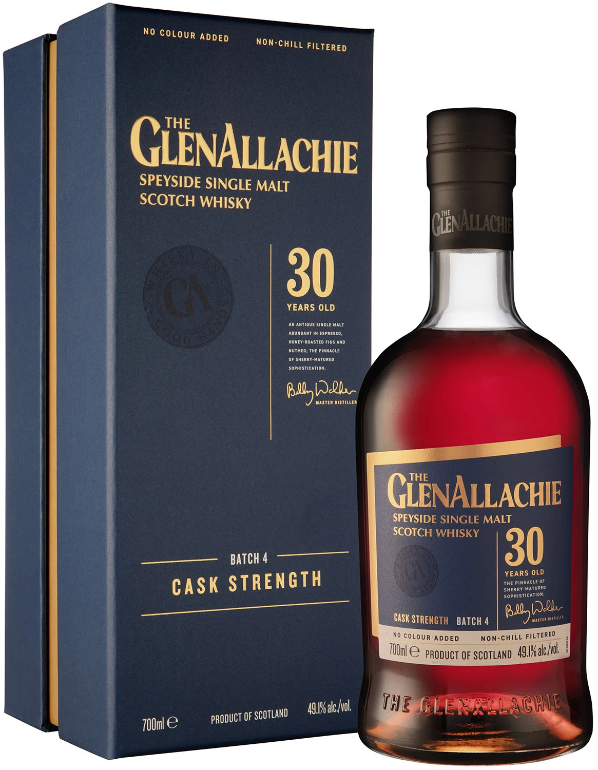 Limitowana, coroczna edycja 30-letniej whisky butelkowana z mocą cask strength. Od momentu przejęcia w 2017 roku destylarni GlenAllachie Billy Walker dążył do stworzenia wyjątkowej 30-letniej edycji. Mając to na uwadze, skrupulatnie nadzorował rozwój wybranych do zrealizowania tego celu beczek whisky. Finalnie każda edycja jest kompozycją kilku beczek. Jest butelkowana w naturalnym kolorze, bez filtracji na zimno i bez rozcieńczania wodą. Jest to GlenAllachie w jej najczystszej postaci, które stanowi idealne połączenie charakteru beczki i destylarni. W czwartym wydaniu wykorzystano whisky z trzech beczek po Pedro Ximenez i dwóch beczek po Oloroso, zarówno typu puncheon jak i hogshead. W efekcie powstała wyjątkowa whisky single malt, przepełniona nutami leśnych owoców, ciemnej czekolady, rodzynek, syropu śliwkowego, migdałów i dzikiego szkockiego miodu.