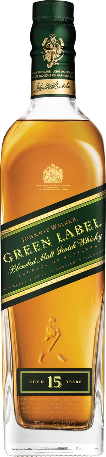 Johnnie Walker Green Label to jedyna wśród whisky Walkerów mieszanka wyłącznie z pojedynczych whisky słodowych (single malts). Najmłodszy jej składnik dojrzewa minimum 15 lat w dębowych beczkach. Doceniona przez koneserów na całym świecie, stała się przedmiotem sporu między Azja a Europą i na parę lat zniknęła z rynków europejskich. Johnnie Walker Green Label zawdzięcza swój intensywny, świeży, nieco dymny smak, z akcentami lasu i ziół m. in. 4 składowym whisky: Talisker, Caol Ila, Linkwood i Cragganmore. Butelka zapakowana jest w estetyczny kartonik, dzięki czemu idealnie sprawdzi się na prezent. Swój niepowtarzalny charakter, świeży i lekko dymny smak ujawnia w pełni po dodaniu jednej kostki lodu.