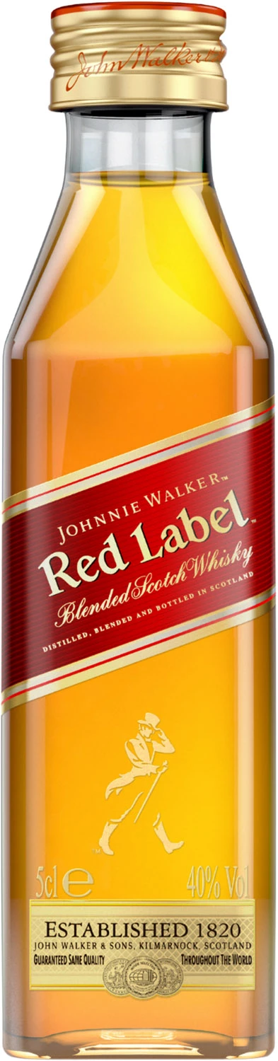 Johnnie Walker Red Label to to niekoronowany król kategorii blended scotch whisky i numer jeden w swojej klasie na świecie. Jego popularność jest tak wielka, że co sekundę na świecie otwieranych jest 6 butelek Johnnie Walker Red Label. Słodki i orzeźwiający smak mieszanki 35 gatunków szkockiej whisky w połączeniu z ostrymi i dymnymi akcentami, nadają jej wyazistości i niepowtarzalnego charakteru. Podstawą Johnnie Walker Red Label są single malts: Talisker z wyspy Skye oraz Cardhu ze Speyside. Bezkompromisowa whisky, niezastąpiona na każdej imprezie. Uwielbiana nie tylko przez dwudziestolatków, ale przez wszystkich. Nie zaginie w żadnym drinku, dzięki kompozycji z nutami ostrzejszymi. Została stworzona z myślą o miksowaniu najlepszych drinków. Doskonale smakuje w połączeniu z imbirowym Ginger Ale.
