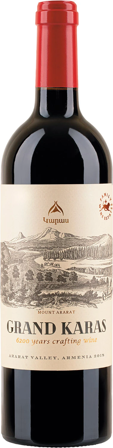 Najwyższej klasy wino z armeńskiej winnicy Karas, najpełniej oddające charakterystykę tutejszego terroir. Bazuje na najlepszych i starannie selekcjonowanych gronach głównie Syrah, uzupełnionych Cabernet Franc i Montepulciano. Dojrzewało przez 14 miesięcy w beczkach z dębu ormiańskiego i francuskiego, a następnie kolejny rok w butelce. Piękna, głęboka, rubinowa barwa. Bogaty bukiet, pełen nut czerwonych owoców, różowego pieprzu i ziół. W smaku złożone i eleganckie. Pełne ciało, miękka, wygładzona tanina i długi finisz. Idealne do twardych serów i pieczonych mięs. To wino o dużej złożoności i potencjale, stworzone przez głównego winiarza Gabriela Rogela przy konsultacji znanego, francuskiego enologa Michela Rollanda. Grand Karas reprezentuje ormiańskievdziedzictwo, łącząc starożytne tradycje z nowoczesnymi technikami winiarskimi.