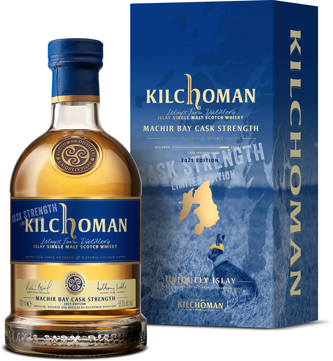 Kilchoman Machir Bay Cask Strength to edycja, na którą wielu miłośników Kilchomana długo czekało. Edycja 2021 trafiła na rynek z rocznym opóźnieniem. Proporcje użytych beczek są takie same jak w przypadku standardowej edycji Machir Bay a więc 90% Bourbon i 10% sherry, wyjątkowość whisky polega jednak na zabutelkowaniu jej w naturalnej mocy cask strength 58,3%. W zapachu początkowo lekkie nuty owoców, zielonych jabłek, a następnie kandyzowane owoce tropikalne przechodzące w wytrawne, ziemiste nuty torfowego dymu. W smaku jest mocna, tłusta i intensywna, pełna cytrusowych nut skórki z cytryny i pomarańczy, miodu, mlecznej czekolady, tłuczonego pieprzu, gałki muszkatołowej i narastającego torfowego dymu. Edycja 2021 liczy 18282 butelki.