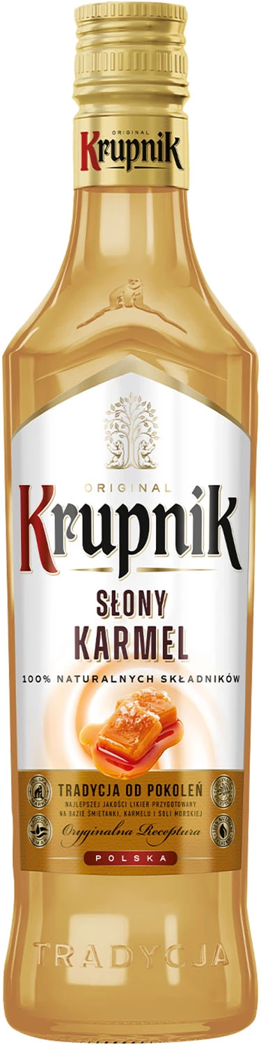 Krupnik Słony Karmel to oryginalne połączenie najwyższej jakości śmietanki i aromatycznego karmelu z solą morską, która doskonale przełamuje delikatną słodycz trunku. Likier ma fantastyczną aksamitną konsystencję i piękny bursztynowy kolor.