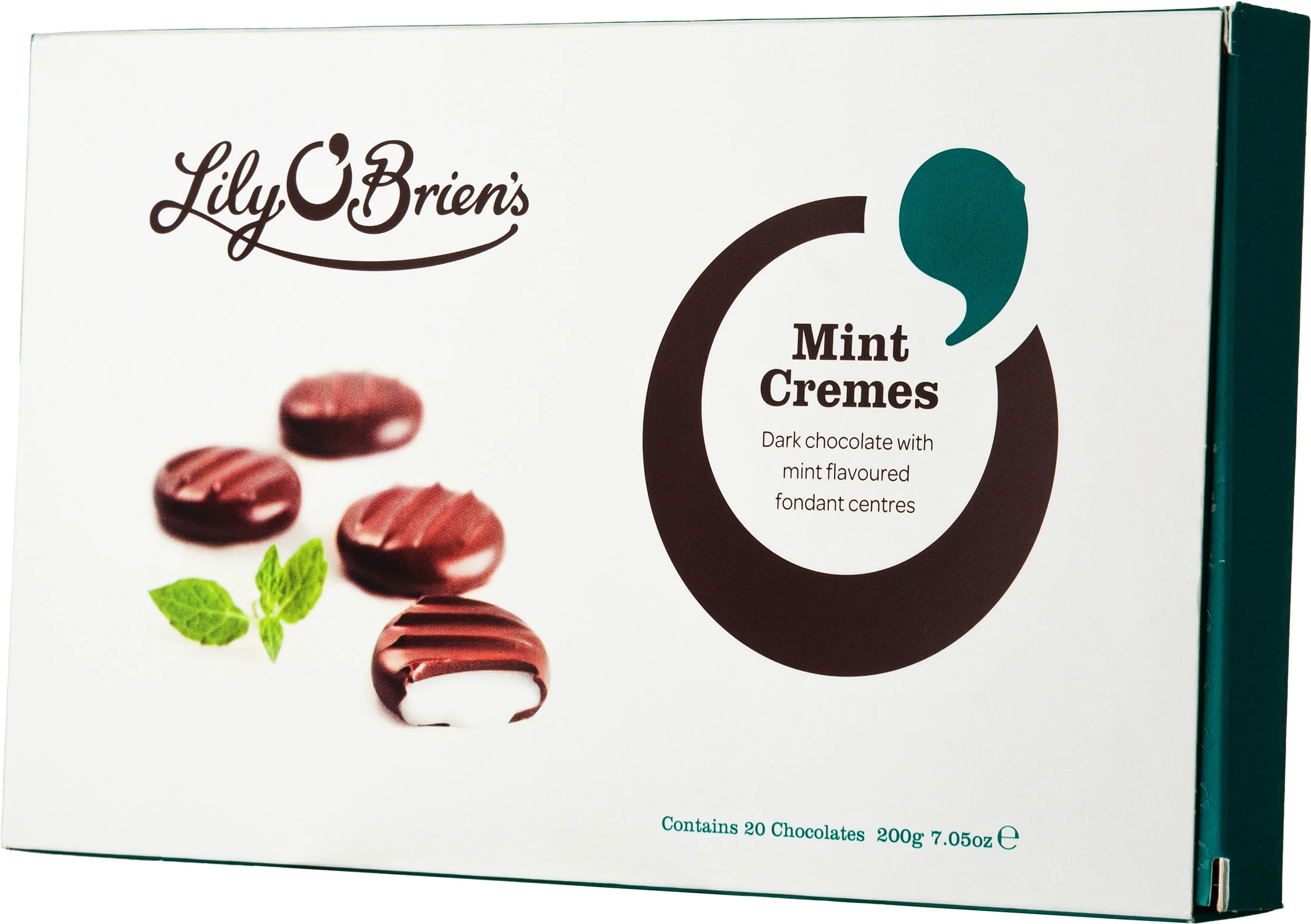 Wykwintne czekoladki z kolekcji Lily O'Brien's – 20 aksamitnych, miętowych pastylek skąpanych w gorzkiej czekoladzie. Intensywna gorzka czekolada otula delikatny, rozpływający się w ustach miętowy krem, tworząc orzeźwiające połączenie głębokiego czekoladowego smaku z chłodzącą świeżością mięty. Podawaj schłodzone jako eleganckie zakończenie kolacji lub do popołudniowej kawy, najlepiej na ciemnej paterze podkreślającej ich wyrafinowany charakter.