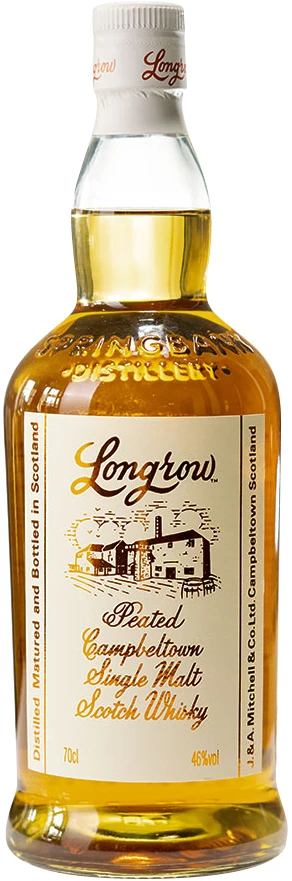Najbardziej torfowa (48ppm), dwukrotnie destylowana whisky single malt produkowana w destylarni Springbank. Swą nazwę wzięła od istniejącej w przeszłości w Campeltown destylarni, której dawny magazyn został zaadaptowany na miejsce do mieszania i butelkowania whisky Springbank. Po raz pierwszy whisky Longrow została wydestylowana w 1973 roku i od lat 90-tych na stałe weszła do kalendarza produkcyjnego. Longrow Peated to whisky bez określenia wieku starzona w beczkach po bourbonie i sherry. W zapachu wyczuwamy waniliowy krem, przypalane pianki mashmallow, zioła i owoce. W smaku niezwykle zrównoważona, gładka i kremowa, z miękkimi nutami torfowego dymu, wanilii, palonego drewna i akcentami medycznymi. Finisz z długo utrzymującym się torfowym dymem. Butelkowana w naturalnym kolorze i bez filtracji na zimno.