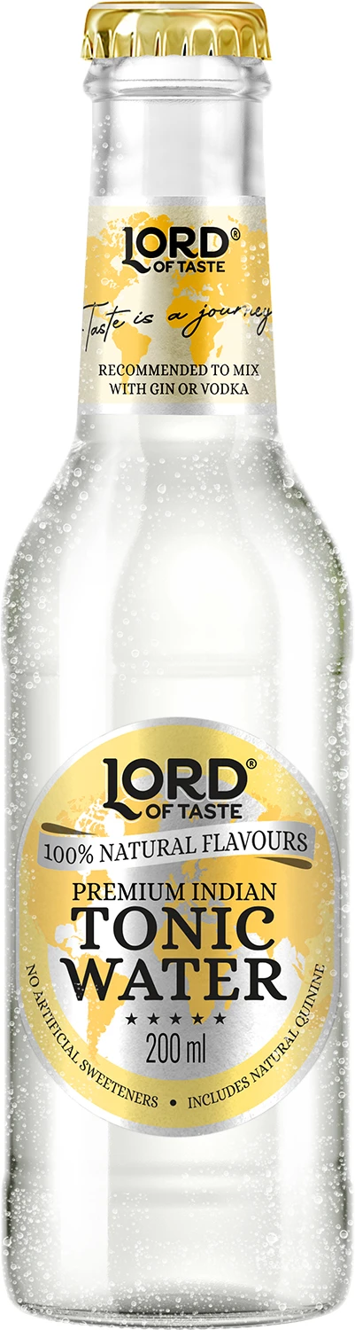 Lord of Taste Premium Indian Tonic Water to delikatna mieszanka krystalicznie czystej wody, wzbogacona o naturalne ekstrakty chininy pozyskiwanej z kory Chinowca rosnącego na dzikich stokach Andów oraz aromaty pomarańczy odmiany Bittersweet. Całość nasycona jest dwutlenkiem węgla, który pozwala na wyzwolenie unikatowych, bardzo przyjemnych aromatów. Lord of Taste Premium Indian Tonic Water wybornie smakuje solo i gwarantuje orzeźwiające doznanie po zmieszaniu z ginem, wódką lub wermutem.