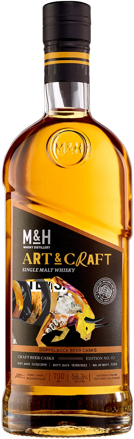 Whisky single malt wchodząca w skład limitowanej serii M&H Art & Craft, obejmującej wyjątkowe, najbardziej cenne i intrygujące beczki destylarni Milk&Honey, każdego roku ręcznie wybierane przez głównego gorzelnika, Tomera Gorena. Whisky nieco ponad 3 lata spędziła w beczkach po bourbonie, które wcześniej przez okres 4-6 miesięcy były wykorzystywane do dojrzewania piwa Doppel Bock z cenionego browaru HAARETZ. Piwo charakteryzuje się słodkim aromatem i smakiem bogatym w czekoladowe i tostowe nuty słodowe. Jedna z beczek wykorzystana w tej edycji spędziła cały rok dojrzewania w warunkach Morza Martwego, co maksymalnie wzmocniło smak whisky. W zapachu odnajdziemy nuty cytrusów, polnych kwiatów, jabłek a następnie toffi, tytoniu i gorzkiej czekolady. W smaku pomarańcze, marcepan, zielone jabłka i skórka pomarańczy w ciemnej czekoladzie. Finisz to nuty dojrzałego banana, mięty, czerwonych jabłek, ziaren kakao i herbatników. Whisky została zabutelkowana w naturalnym kolorze, bez filtracji na zimno i z mocą cask strength 58,3%. Edycja liczy 1238 butelek.