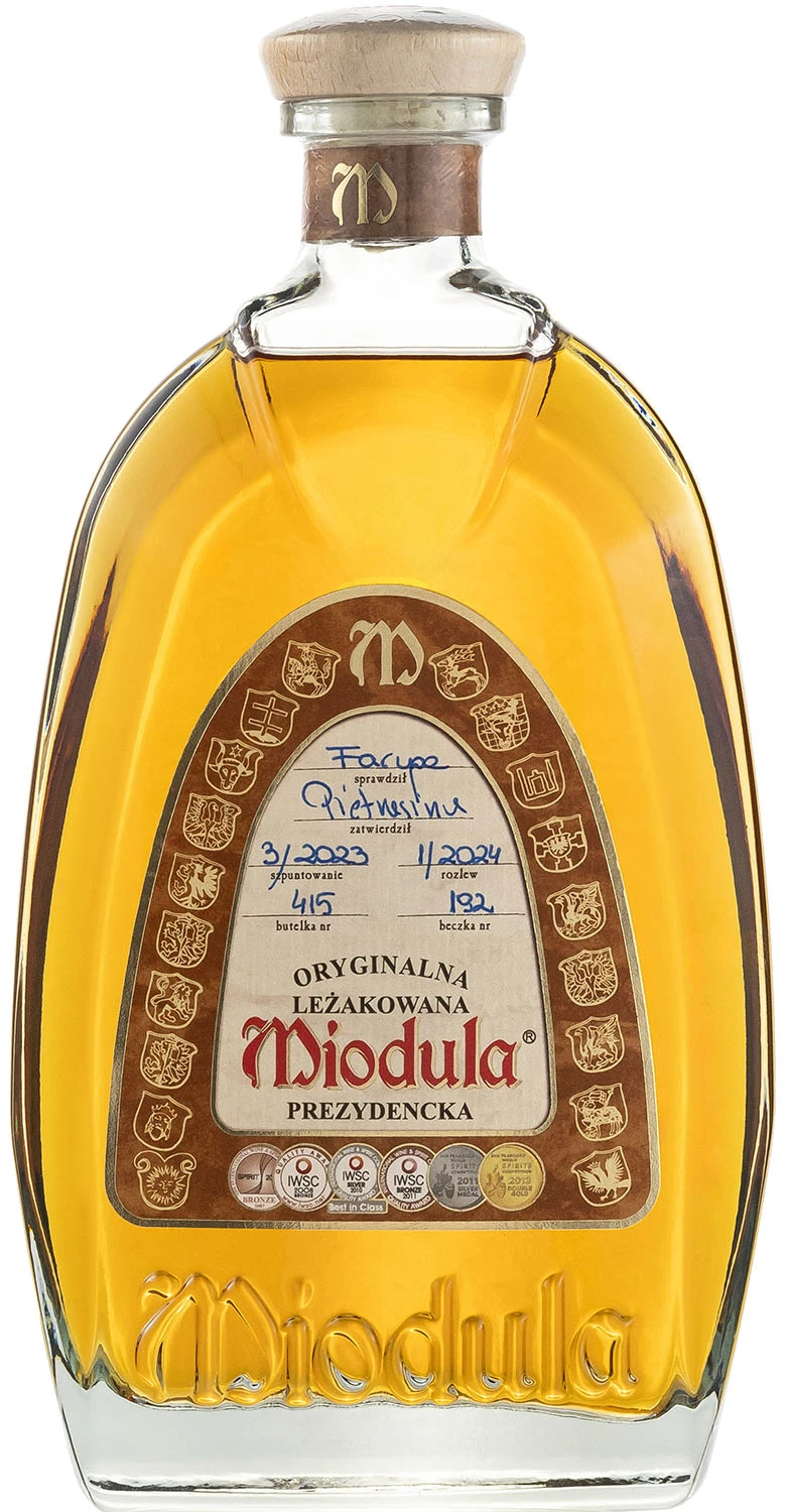 Miodula Prezydencka leżakuje w dębowych beczkach z dębu polskiego, dostarczanych przez jednego producenta, ze względu na fakt, iż skład drewna jest różny w zależności od terenów, z jakich pochodzi. Dzięki temu uzyskujemy produkt o ustabilizowanych cechach aromatyczno-smakowych. Do produkcji beczek stosowane jest drewno ze starych dębów, przy czym ważne jest suszenie go przez kilka lat. W skład dębiny wchodzi duża ilość związków aromatycznych, które migrują w trakcie leżakowania do alkoholu i mają ogromny wpływ na tworzenie odpowiedniego bukietu trunku. Beczki dębowe są uszlachetniane poprzez specjalną obróbkę drewna polegającą na wypalaniu ogniem klepek aż do czasu uzyskania właściwego stopnia opalenia, wówczas dębina nadaje Mioduli wyjątkowego, tradycyjnego i niepowtarzalnego aromatu.