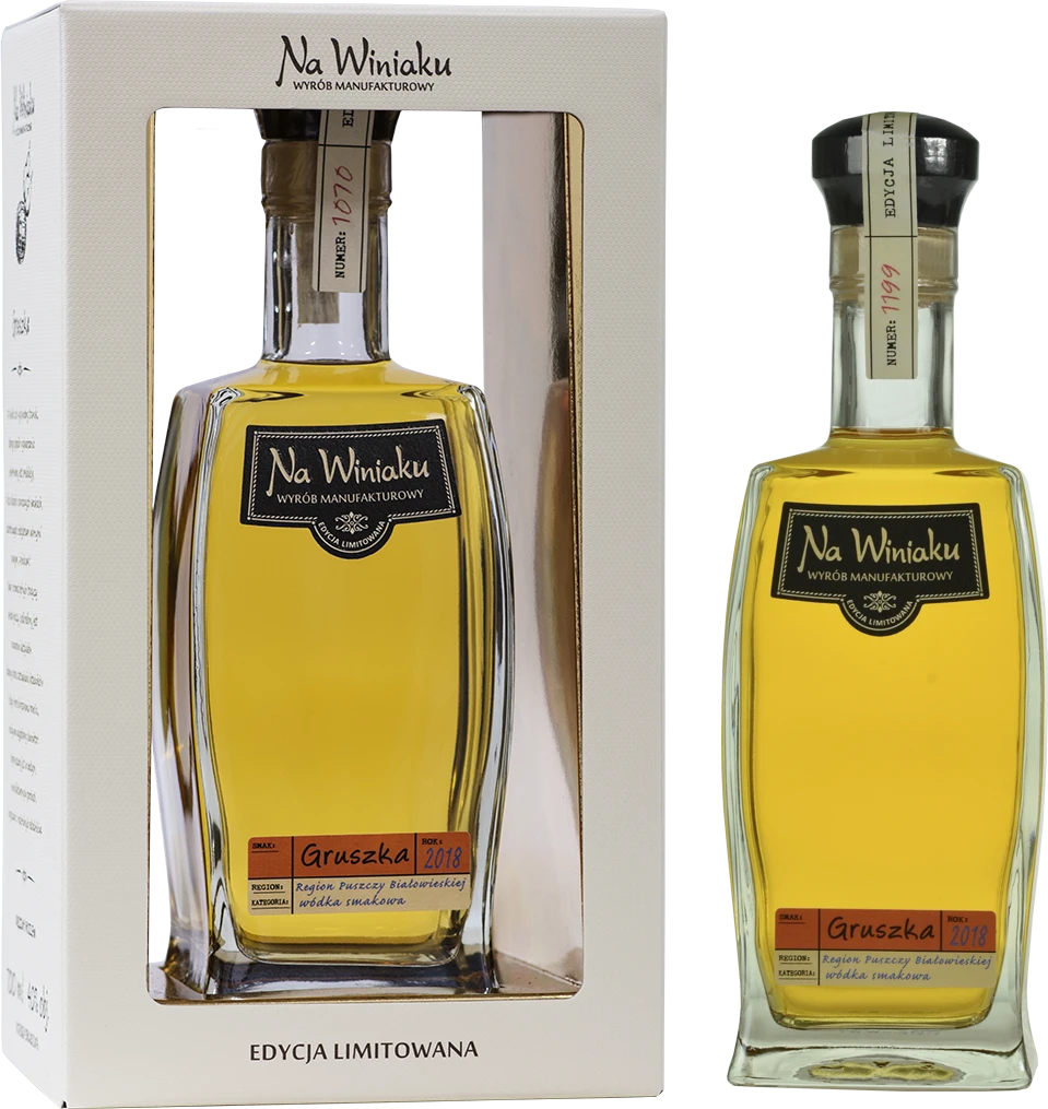 Wykwintny trunek, którego sposób wytwarzania inspirowany jest produkcją w Polsce alkoholi o owocowych smakach, uszlachetnionych destylatami winnymi zwanymi “winiakami”. Smak i aromat pełnych słodyczy owoców gruszy podkreślony jest aromatami destylatów. Staranny proces zestawiania składników i długi okres dojrzewania trunku, nadają mu wyjątkowy charakter. Wytwarzany jest w małych, manufakturowych partiach, wyłącznie z naturalnych składników. Wyrób rocznikowany.