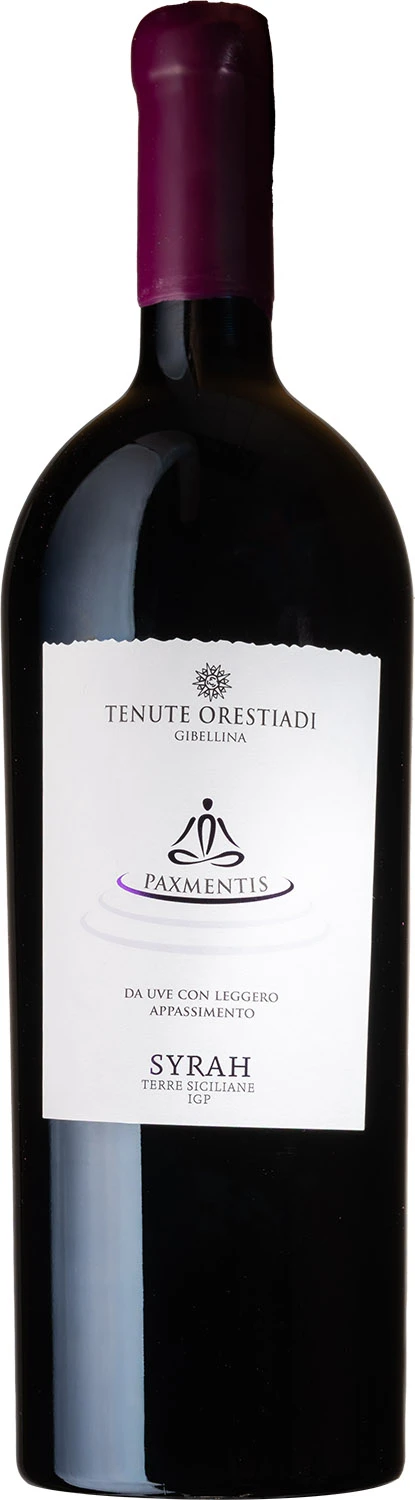 Paxmentis to zaskakujące i nieoczywiste wino z odmiany Syrah (100%). Ręcznie zbierane grona, są przenoszone do winiarni, gdzie przez około 20/30 dni przechodzą naturalny proces suszenia. Po tym okresie winogrona są wyciskane i fermentowane w kontrolowanej temperaturze przez około 15/20 dni. Następnie wino dojrzewa przez 12 miesięcy w beczkach z francuskiego dębu. Wino o intensywnej rubinowej barwie z fioletowymi tonami. W zapachu częstuje mieszaniną świeżo zerwanych, słodkich czerwonych owoców, śliwki, wiśni w czekoladzie, suszonej figi i wanilii. W ustach jest pełne i bogate, z długim i przyjemnym zakończeniem. Idealne w połączeniu z pieczonym bądź grillowanym mięsem, sycylijskiej klasyki, czyli pasty alla norma (z bakłażanem) bądź średnio dojrzałych serów.