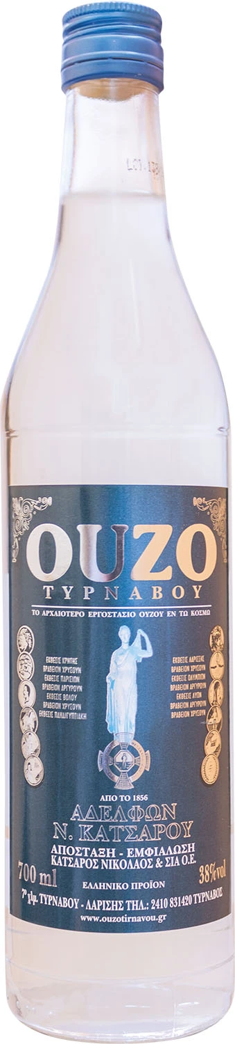 Ouzo to grecki trunek narodowy (Unia Europejska przyznała Grecji w 2006 roku wyłączność na jego produkcję). Ouzo Tirnavou bazuje na ponad 160-letniej recepturze i powstaje w procesie destylacji alembikowej bardzo wysokiej jakości alkoholu gronowego z dodatkiem 14 ziół, w tym anyżu. Bezbarwne ouzo, które w zapachu jest bardzo aromatyczne i intensywne. W smaku hojne, o korzennych akcentach, które zapewniają przyjemne wrażenia. Spożywane może być solo jako digestif, ewentualnie rozcieńczone wodą lub w drinkach.