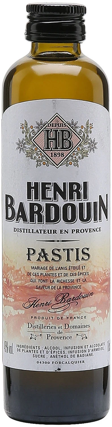Pastisem nazywamy alkohole aromatyzowane anyżem i lukrecją. Pastis Henry Bardouin to kompozycja 65 ziół i przypraw, dobranych w taki sposób, aby nigdy nie zmęczyć swoim smakiem. Pozostałe składniki to alkohol, cukier i woda. Zioła i przyprawy są ściśle selekcjonowane ze względu na swoje właściwości aromatyczne. HB jest zbalansowany w taki sposób, żeby nie zakłócać doznań smakowych podczas jedzenia, dzięki czemu jest jedynym na rynku pastisem, który może być serwowany w trakcie posiłku. Jest również jedynym pastisem nagrodzonym złotym medalem na Targach Rolniczych w Paryżu. Pastis pije się z wodą, przyjmując proporcję 6 części zimnej wody na 1 część HB.