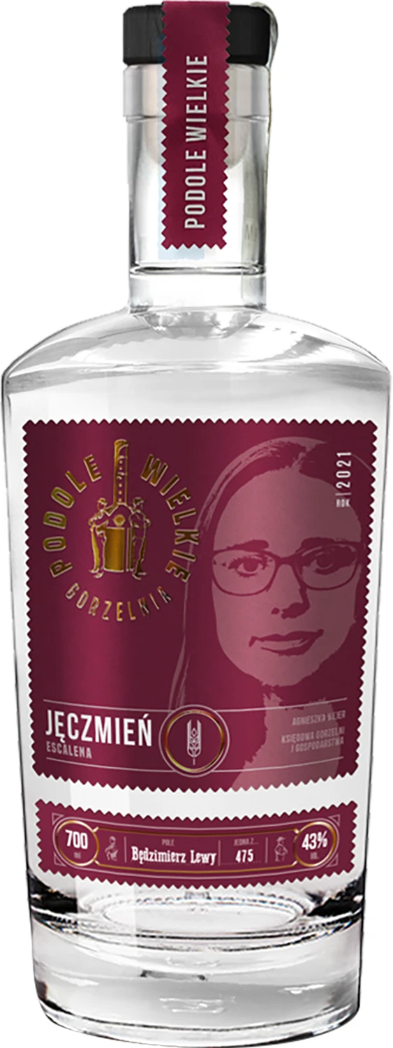 Okowita Podole Wielkie Jęczmień rocznik 2021 to jedna z naszych najbardziej nieoczywistych okowit. Słodki aromat polnych kwiatów i zielonych ziaren kawy przechodzi w kremowy, lekki smak purre i orzechów. Całości dopełnia delikatny finisz z nutami kakao i prażonego ziarna. Nos – pełny, słodki, polne kwiaty, puree z białych warzyw, po czasie ziele angielskie, rozmaryn, liście laurowe Usta – Lekkie , kremowe, puree ziemniaczane, słodycz selera, póżniej, odrobina pieprzu, zielone orzechy, zioła Finisz – delikatny, kakao, ziarna kawy. Patronką rocznika 2021 okowit Podole Wielkie jest Pani Agnieszka Wejer.
