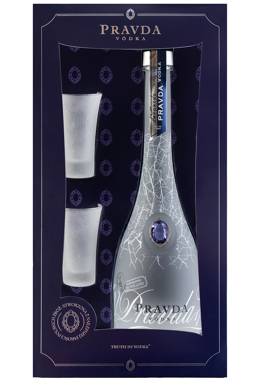 PRAVDA 0,7L+ 2 KIELISZKI SZRONIONE FROSTED GLASS