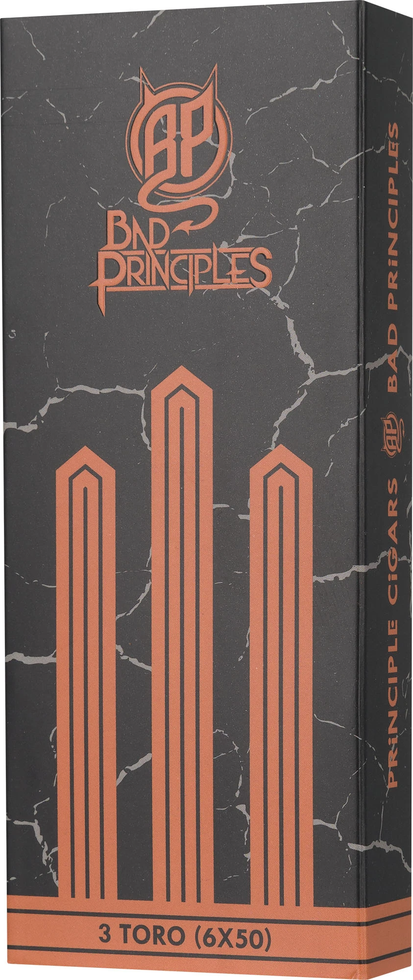 Format: Toro Inch: 6” x 50 Mm: 152 x 20 Moc: Medium Filler: Dominican Binder: Dominican Monte Plata Wrapper: Ecuador Opakowanie: Pudełko Papierowe Ilość sztuk w opakowaniu: 3 Podana wartość jest ceną za 1 sztukę cygara. Po raz pierwszy Bad Principles pojawiły się wraz z wprowadzeniem na rynek cygar linii Principles Aviator w 2013 roku. Wraz z dynamicznym wzrostem podstawowych linii (seria Aviator oraz Accomplice), rozwój Bad Principles zszedł na drugi plan co skutkowało tym, że po kilku ""wypustach"" produkcja wygasła. Jednak zasada stojąca za tym wyjątkowym produktem w dalszym ciągu była ważna dla Darrena Cioffi (właściciela marki) i chęć przywrócenia ich z powrotem do życia nigdy nie wygasła. W ciągu ostatnich lat Świat przeszedł wiele i Darren zdecydował, że nigdy nie będzie lepszego czasu na ponowne wprowadzenie Bad Principles na rynek. Tym razem Bad Principles są wypełnione dominikańskim tytoniem (filler) z Kelner Boutique Factory (producenta serii Aviator) i używają liścia zawijacza (bindera) Monte Plata wyhodowanego na Dominikanie przez Monikę Kelner. Wszystko to otoczone jest pyszną pokrywą (wrapper) z Ekwadoru. Wyjątkowość tego cygara to to również konstrukcja: klasyczna pokrywa (wrapper) otoczona jest podwójnym liściem zawijacza (binder), a wypełnienie to pierwszy w historii Principle Cigars Medium Filler. Aromaty z Ekwadorskiego liścia połączone z dominikańskim wypełnieniem, przekładają się na intensywność cedru, ciemnej czekolady łączącego się z nutami słodyczy. Aby zwiększyć przystępność Bad Principles dostarczane one są w nowym opakowaniu - zaprojektowanym od nowa pudełku kartonowym o pojemności trzech cygar formatu Toro.