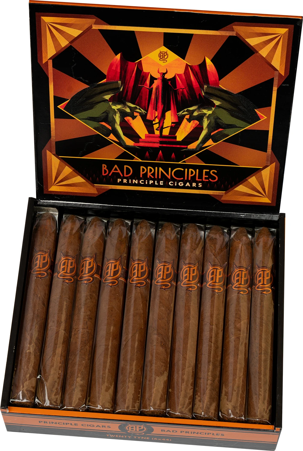 Format: Torpedo Inch: 6” x 44 Mm: 152 x 17 Moc: Medium Filler: Dominican Binder: Dominican Monte Plata Wrapper: Ecuador Opakowanie: Skrzynka Ilość sztuk w opakowaniu: 20 Podana wartość jest ceną za 1 sztukę cygara. Po raz pierwszy Bad Principles pojawiły się wraz z wprowadzeniem na rynek cygar linii Principles Aviator w 2013 roku. Wraz z dynamicznym wzrostem podstawowych linii (seria Aviator oraz Accomplice), rozwój Bad Principles zszedł na drugi plan co skutkowało tym, że po kilku ""wypustach"" produkcja wygasła. Jednak zasada stojąca za tym wyjątkowym produktem w dalszym ciągu była ważna dla Darrena Cioffi (właściciela marki) i chęć przywrócenia ich z powrotem do życia nigdy nie wygasła. W ciągu ostatnich lat Świat przeszedł wiele i Darren zdecydował, że nigdy nie będzie lepszego czasu na ponowne wprowadzenie Bad Principles na rynek. Tym razem Bad Principles są wypełnione dominikańskim tytoniem (filler) z Kelner Boutique Factory (producenta serii Aviator) i używają liścia zawijacza (bindera) Monte Plata wyhodowanego na Dominikanie przez Monikę Kelner. Wszystko to otoczone jest pyszną pokrywą (wrapper) z Ekwadoru. Wyjątkowość tego cygara to również konstrukcja: klasyczna pokrywa (wrapper) otoczona jest podwójnym liściem zawijacza (binder), a wypełnienie to pierwszy w historii Principle Cigars Medium Filler. Aromaty z Ekwadorskiego liścia połączone z dominikańskim wypełnieniem, przekładają się na intensywność cedru, ciemnej czekolady łączącego się z nutami słodyczy.