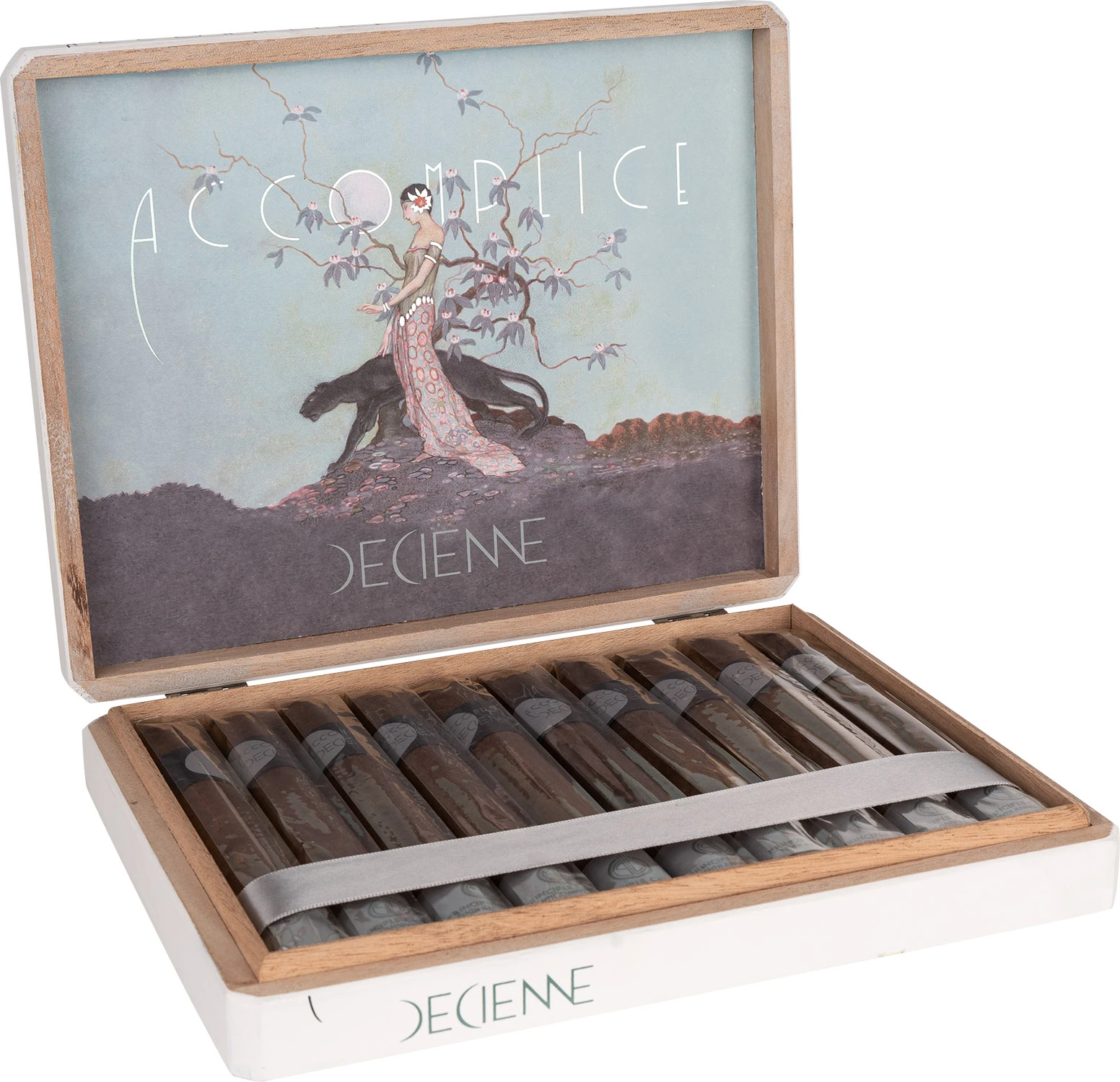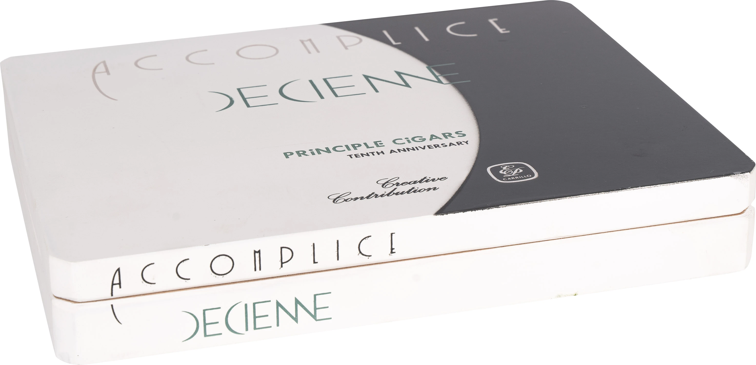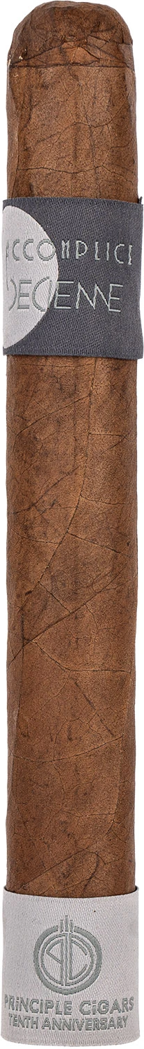 Format: Toro Inch: 6,5” x 54 Mm: 156 x 21 Moc: Medium-Full Filler: Dominican x 2, Nicaragua x 2 Binder: Nicaragua Wrapper: Ecuador Habano 2000 Opakowanie: Skrzynka Ilość sztuk w opakowaniu: 10 Podana wartość to cena za 1 sztukę cygara Kolejne cygaro, które powstało w Limitowanej Serii na obchody 10-lecia Principle Cigars Przy tym specjalnym projekcie Darren nawiązał współpracę z Ernesto Perez-Carrillo i tak powstało „ACCOMPLICE DECIENNE”. Accomplice Decienne pięknie wyraża istotę obu domów cygarowych. Prezentuje smaki i mocne strony, których można oczekiwać od Carrillo, zachowując jednocześnie harmonię i głębię charakterystyczną dla Principle. Profil można najlepiej opisać jako nieskazitelnie czysty, z kuszącą obecnością suszonych owoców i harmonijną kwasowością, a wszystko to dostarczane z gęstym, aksamitnym dymem.