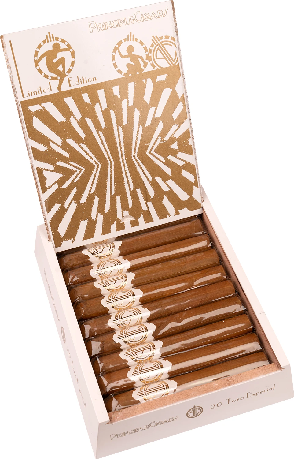 Format: Toro Inch: 6” x 50 Mm: 152 x 20 Moc: Light Filler: Dominican (x3), African Zimbabwe Binder: Dominican Monte Plata Wrapper: Ecuador Connecticut Opakowanie: Skrzynka Ilość sztuk w opakowaniu: 20 Podana wartość to cena za 1 sztukę cygara Projekt „Principle Gold Band” narodził się w limitowanej edycji, jako wynik intensywnych poszukiwań smaków i aromatów w cygarach, które wychodziłyby poza standard linii Aviator Series. Założeniem twórców było stworzenie takiego blendu, który nie do końca pasowałyby do ducha serii Aviator, a w którym można byłoby wykorzystać małe partie najwyższej klasy tytoniu. Rozszerzniem linii była edycja "Black Gold" z liściem maduro, a teraz przyszła kolej na "Białe Złoto" czyli wersję White Gold z jasnym liściem pokrywowym typu Connecticut. Principle White Gold to Limitowana Edycja stworzona z okazji 10-lecia marki. I znowu jak przy takich projektach, Darren Cioffi poszukiwał wyjąktowych tytonii, które pozwoliłyby stworzyć cygaro lekkie w mocy ale z dużą ilością aromatów i smaków. Kremowy dym, słodycz, delikatne nuty drzewa cedrowego to wszystko powoduje, że jest to idealne cygara dla początkujących jak i zaawansowanych Cigar Aficionados.