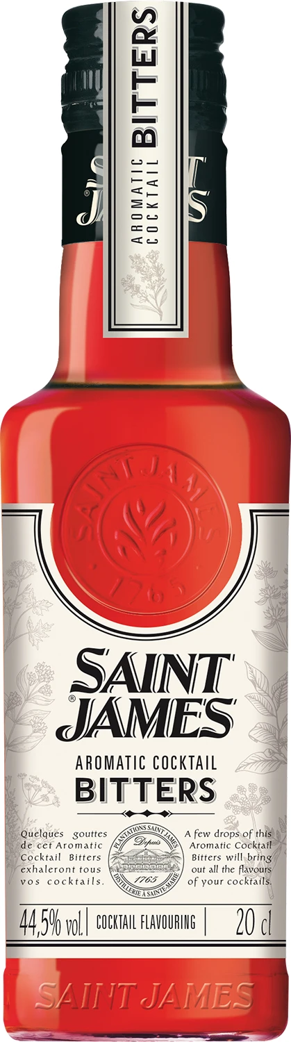 Kilka kropli SAINT JAMES BITTERS podkreśli smaki Twoich koktajli. Są one niezbędne m.in do kultowego Old Fashioned, a poręczny zakraplacz wbudowany w szyjkę ułatwi serwowanie. Bitters ten został stworzony na podstawie oryginalnych, historycznych receptur. Powstał w wyniku maceracji różnych roślin i przypraw (chinowiec, goryczka, arcydzięgiel, kminek, kolendra, piołun itp.). Bazą jest rum agricole, który koncentruje te wszystkie smaki i aromaty.