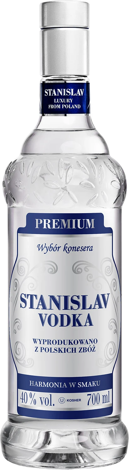 Stanislav to wyjątkowa polska wódka premium, stworzona z najwyższej jakości spirytusu zbożowego i krystalicznie czystej, górskiej wody. Nasza – polska, autentyczna, niezmiennie najlepsza. To koszerna wódka, obok której nie sposób przejść obojętnie. Już na pierwszy rzut oka przyciąga oryginalnym, eleganckim wyglądem, by chwilę później zachwycić smakiem – delikatnym, chlebowym, z subtelną nutą ziaren. Powstaje w sercu Beskidu Śląskiego, czerpiąc z bogatej polskiej tradycji, otwartości i gościnności. Jej charakter buduje neutralny spirytus zbożowy, w 90% żytny, z dodatkiem innych zbóż, pochodzących wyłącznie z polskich plantacji. Wielokrotna destylacja z zastosowaniem technologii hydroselekcji łagodzi smak etanolu i eliminuje niepożądane związki, a zaawansowana filtracja węglem aktywnym oraz sterylnymi filtrami farmaceutycznymi dodatkowo wygładza profil smakowy. W przeciwieństwie do standardowych metod nie stosujemy zasypywania węglem, co pozwala zachować lekko ostrzejszy charakter wódki.