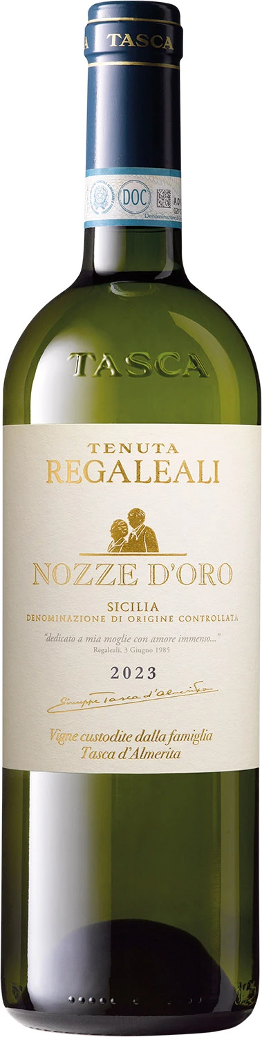 Nozze d'Oro jest kolejnym winem, które opowiada historię rodziny Tasca oraz ich posiadłości Zostało stworzone po raz pierwszy w 1984 roku dla uczczenia 50. rocznicy ślubu hrabiego Giuseppe Tasca d’Almerita ze swą żoną Francescą. Unikalna kompozycja winogron Inzolia 67% oraz Sauvignon Tasca 33%, uprawianych w winnicy od czasów I Wojny Światowej. Po zakończonej fermentacji w stalowych kadziach wino dojrzewa 3-4 miesiące na osadzie, a następnie dodatkowe pół roku w butelce, zanim trafia do sprzedaży. Świeże, niezwykle owocowo – kwiatowe, z wyraźnie zaznaczoną nutą kwiatu pomarańczy i owoców egzotycznych. W smaku rześkie i lekko pikantne, o świetnej, złożonej teksturze i długim finiszu. Idealne do ryb i owoców morza.