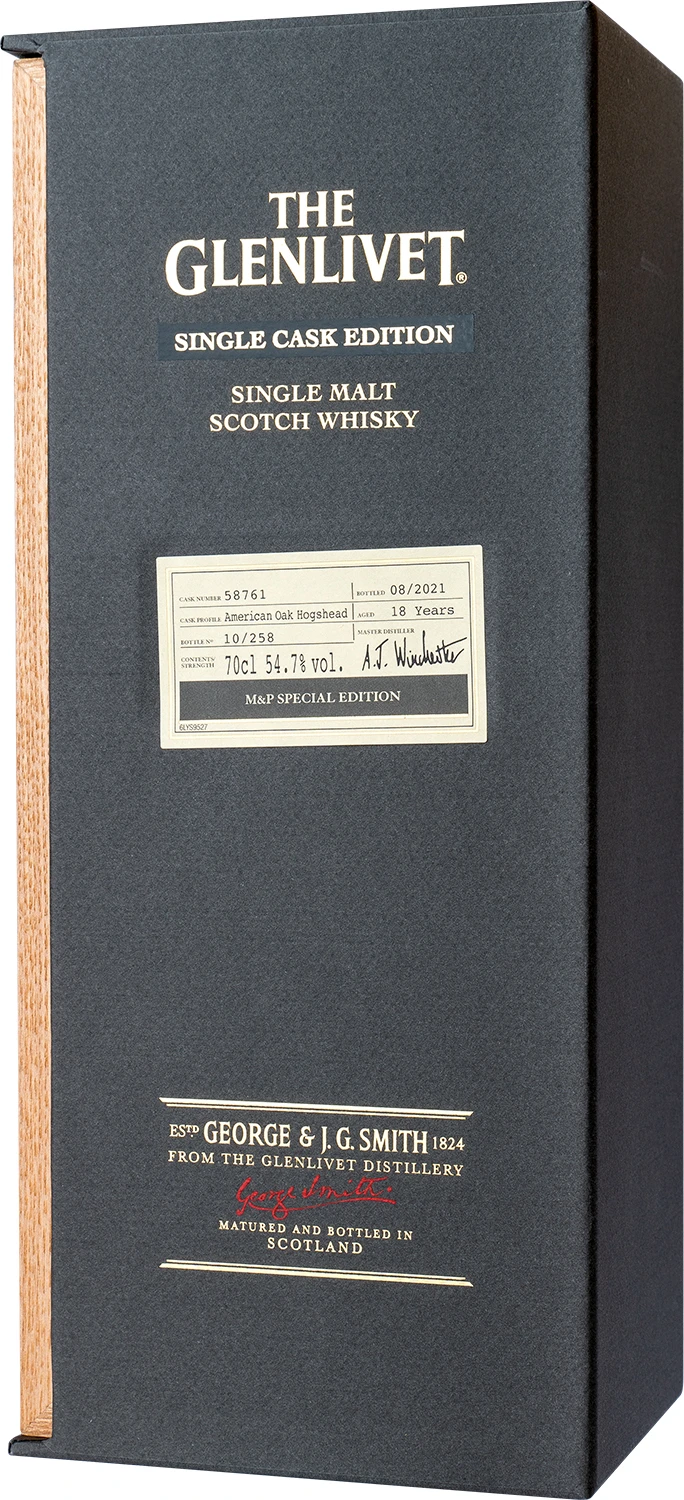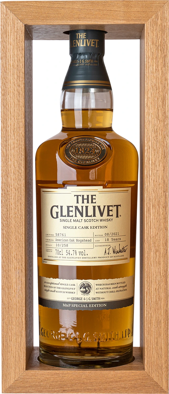 Jest to pierwszy single cask z działającej w regionie Speyside destylarni Glenlivet, zabutelkowany dla firmy M&P Pavlina. Whisky przez 18 lat dojrzewała w beczce American Oak Hogshead nr 58761 i została zabutelkowana 08/2021 z naturalną mocą cask strength 54,7% Whisky nie była filtrowana na zimno i nie była barwiona karmelem. Tylko 258 numerowanych butelek.