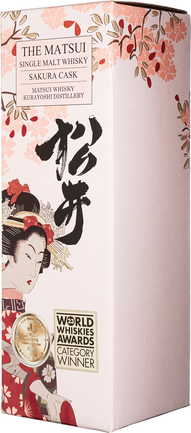 Matsui Sakura Cask to wyjątkowa whisky single malt wyprodukowana przez destylarnię Kurayoshi. Whisky przez ponad 3 lata dojrzewała w beczkach wykonanych z „Sakura”, słynnego i kultowego japońskiego drzewa wiśniowego. Drzewo to odgrywa ważną rolę w japońskiej kulturze i jest często używane jako metafora podkreślająca efemeryczną naturę piękna, jak i samego życia. Jest stałym źródłem inspiracji dla japońskich artystów. Na etykiecie butelki znajduje się ilustracja autorstwa Kikukawa Eizan zatytułowana „Piękno w ogrodzie kwitnącej wiśni”. W zapachu odnajdziemy aromaty drewna Sakura, które nadaje whisky rześki zapach kwiatów wiśni. W smaku pieczone jabłka, krem maślany i suszona skórka cytryny. Finisz jest długi, z nutami „lemon curd”, świeżego drewna i prażonych migdałów.