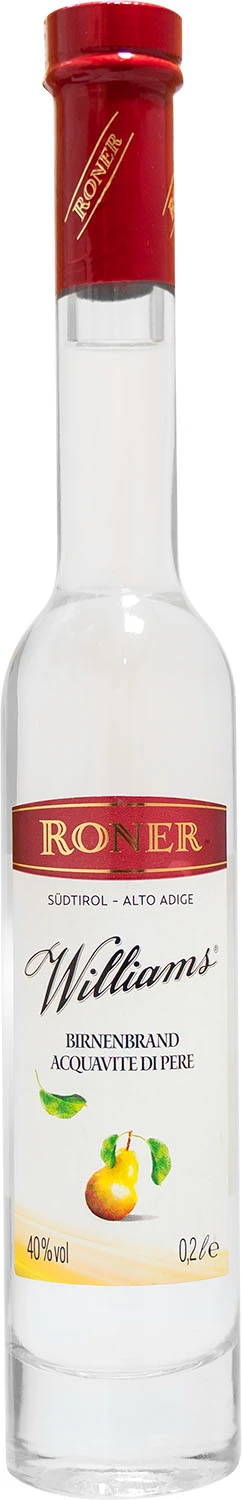 Destylaty owocowe są specjalnością firmy Roner. Destylat z gruszek uzyskuje się ze starannie wyselekcjonowanych i zbieranych prosto z drzewa gruszek Williams. Poddawany podwójnej destylacji tradycyjną metodą w destylatorach bain-marie. Dzięki tej procedurze zachowuje się naturalny owocowy aromat, zapewniając powstanie wysokiej klasy brandy. Eau-de-vie o zawartości alkoholu 70% jest przechowywana w kadziach z nierdzewnej stali, gdzie uzyskuje nie zmieniony, naturalny zapach świeżych gruszek. Po 12-to miesięcznym procesie dojrzewania, podczas którego destylat osiąga optymalną jakość i nabiera słodkości, roztwór o wysokiej zawartości alkoholu poddawany jest filtracji i ostatecznie butelkowaniu. Zarówno w smaku jak i w zapachu charakteryzuje się wspaniałymi, ekskluzywnymi aromatami dojrzałych gruszek Williams.