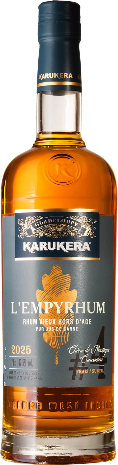Karukera Empyrhum #4 to wyjątkowa, limitowana edycja rumu agricole wyprodukowanego z czystego soku z trzciny cukrowej a następne starzonego przez ponad 6 lat w nowych, średnio tostowanych, 350-litrowych, beczkach z dębu kaukaskiego. W efekcie powstał świeży i subtelny rum o wyraźnej słodyczy, z wyczuwalnymi nutami eukaliptusa, drewna sandałowego i czarnego pieprzu. Edycja liczy 3169 butelek zabutelkowanych z mocą 47,5%. Porównując do pozostałych edycji starzonych w w beczkach z dębu francuskiego, beczki z dębów rosnących u podnóża Kaukazu, na ubogiej, skalistej i suchej glebie, nadają rumom świeżości, nut korzennych (goździki, czarny pieprz) i strukturę.